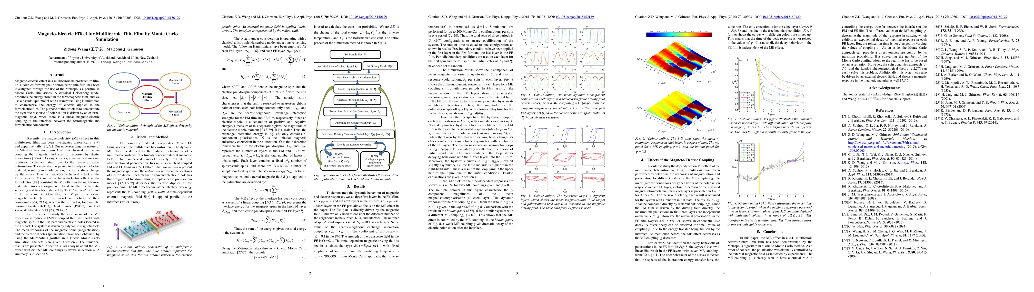 This study uses Monte Carlo simulations to investigate the magneto-electric effect in a multiferroic heterostructure film, focusing on the dynamic response of polarization driven by an external magnetic field due to linear magneto-electric coupling at the interface between ferromagnetic and ferroelectric components.