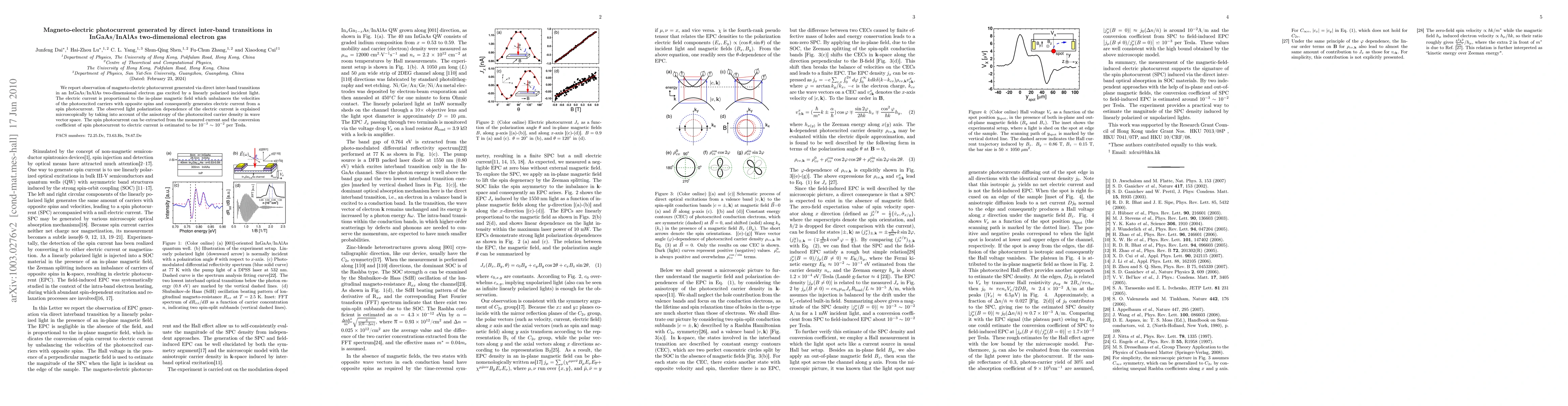 This study observes magneto-electric photocurrent from direct inter-band transitions in an InGaAs/InAlAs two-dimensional electron gas under linearly polarized light. The current depends on the in-plane magnetic field, converting spin photocurrent into measurable electric current with a conversion coefficient of $10^{-3}\sim10^{-2}$ per Tesla.