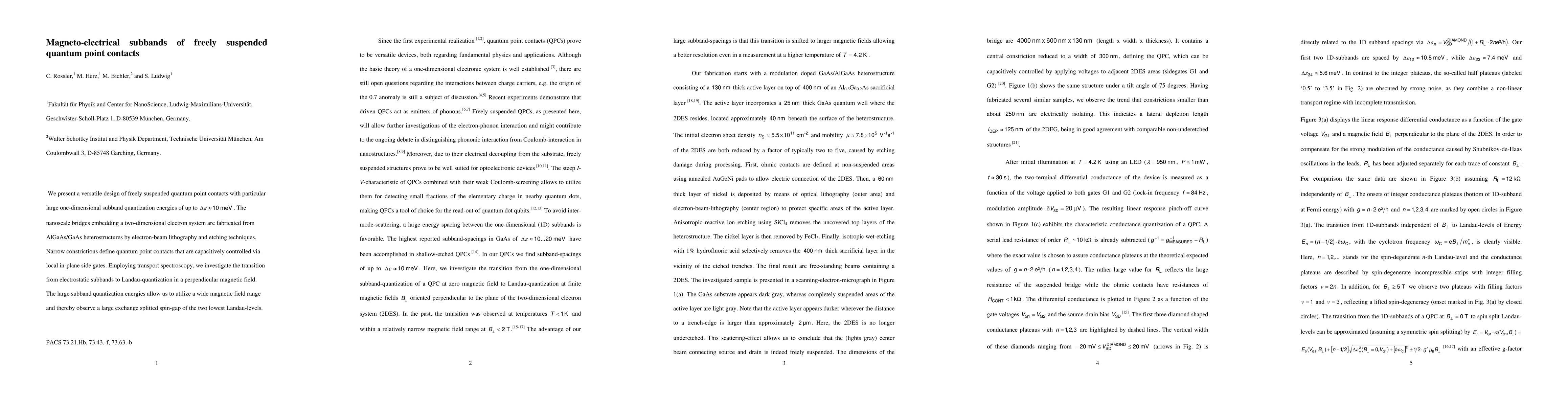 This paper details the design of freely suspended quantum point contacts with high one-dimensional subband quantization energies, fabricated from AlGaAs/GaAs heterostructures. The study investigates the transition from electrostatic to Landau quantization under magnetic fields, revealing a significant spin-gap due to large subband quantization energies.