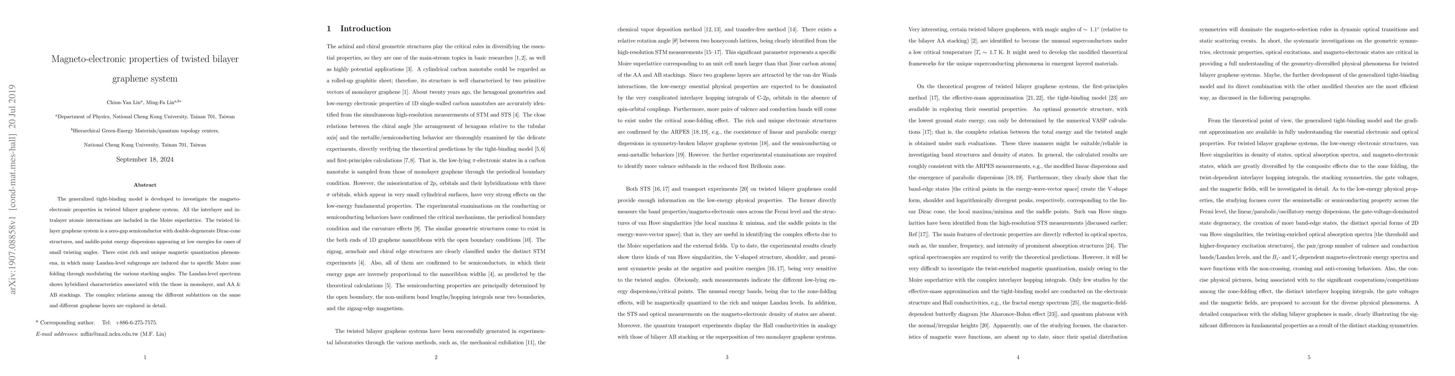 This research develops a generalized tight-binding model to explore the magneto-electronic properties of twisted bilayer graphene, revealing unique magnetic quantization phenomena and complex interlayer interactions in the Moire superlattice. The system exhibits double-degenerate Dirac-cone structures and hybridized Landau levels influenced by stacking angles.