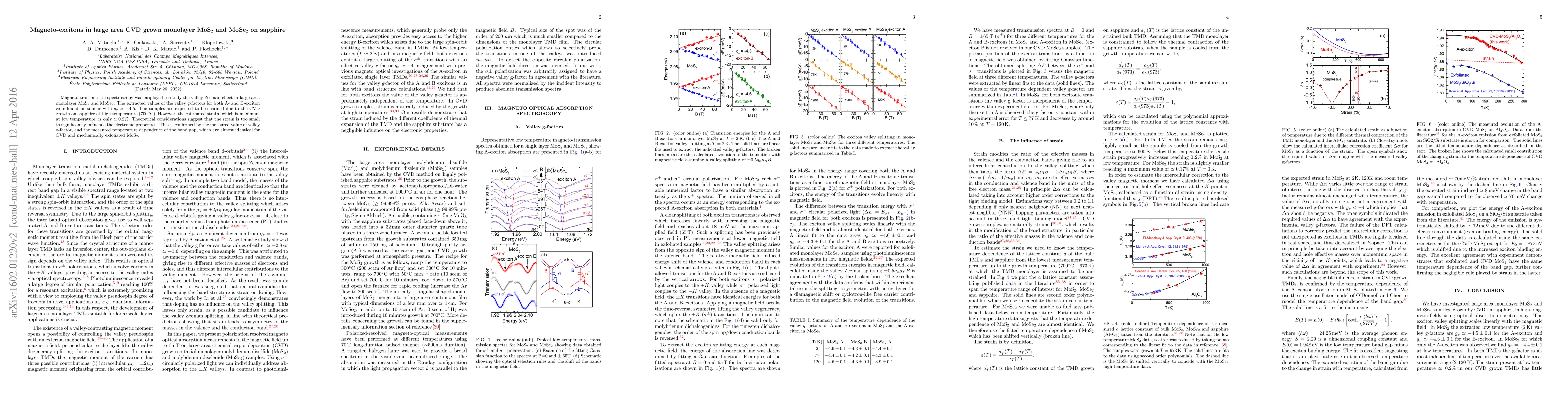 Magneto transmission spectroscopy was employed to study the valley Zeeman effect in large-area monolayer MoS$_{2}$ and MoSe$_{2}$. The extracted values of the valley g-factors for both A- and B-exciton were found be similar with $g_v \simeq -4.5$. The samples are expected to be strained due to the CVD growth on sapphire at high temperature ($700^\circ$C). However, the estimated strain, which is maximum at low temperature, is only $\simeq 0.2\%$. Theoretical considerations suggest that the strain is too small to significantly influence the electronic properties. This is confirmed by the measured value of valley g-factor, and the measured temperature dependence of the band gap, which are almost identical for CVD and mechanically exfoliated MoS$_2$.