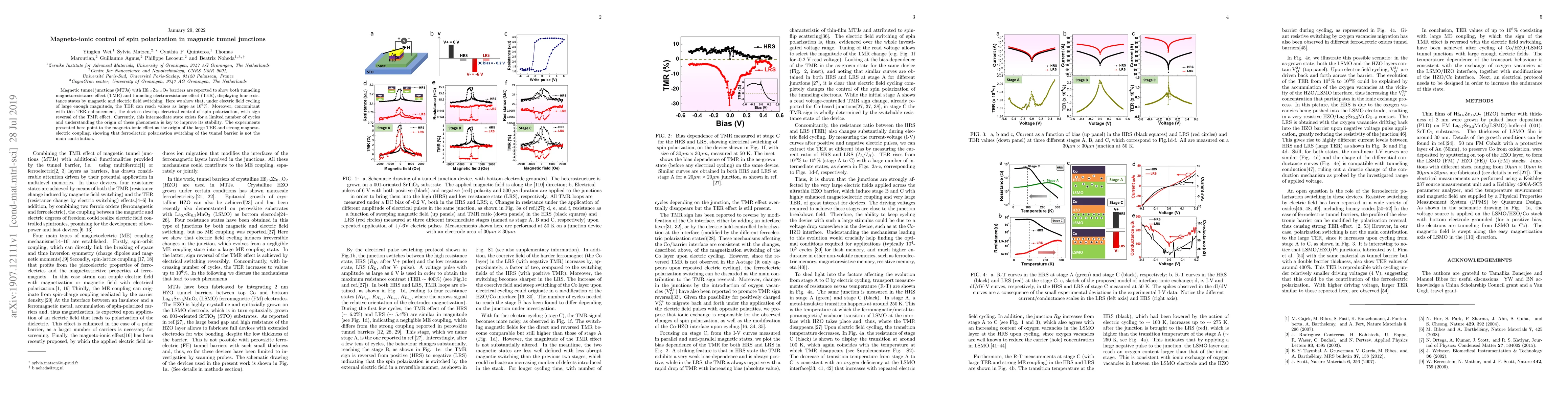 This paper explores magnetic tunnel junctions with Hf0.5Zr0.5O2 barriers that exhibit both TMR and TER, achieving up to 10^6% TER under large electric field cycling. The study reveals electrical control of spin polarization and a sign reversal of the TMR effect, attributing the phenomena to a magneto-ionic effect rather than ferroelectric polarization switching.