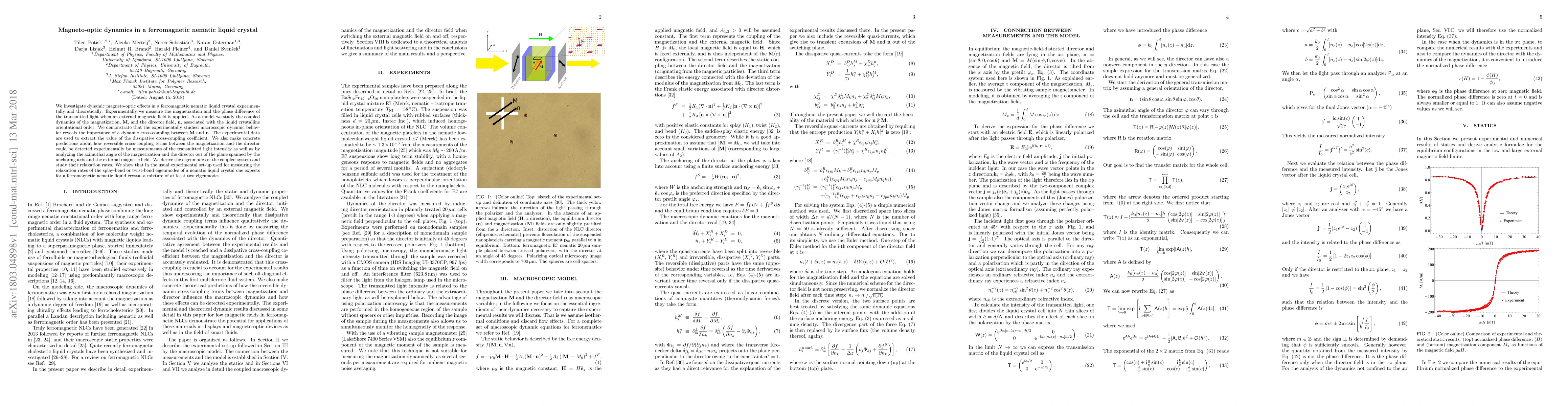 This paper explores the dynamic magneto-optic effects in a ferromagnetic nematic liquid crystal, revealing a significant cross-coupling between magnetization and liquid crystalline orientation. The study combines experimental and theoretical approaches to derive eigenmodes and predict measurable phenomena.