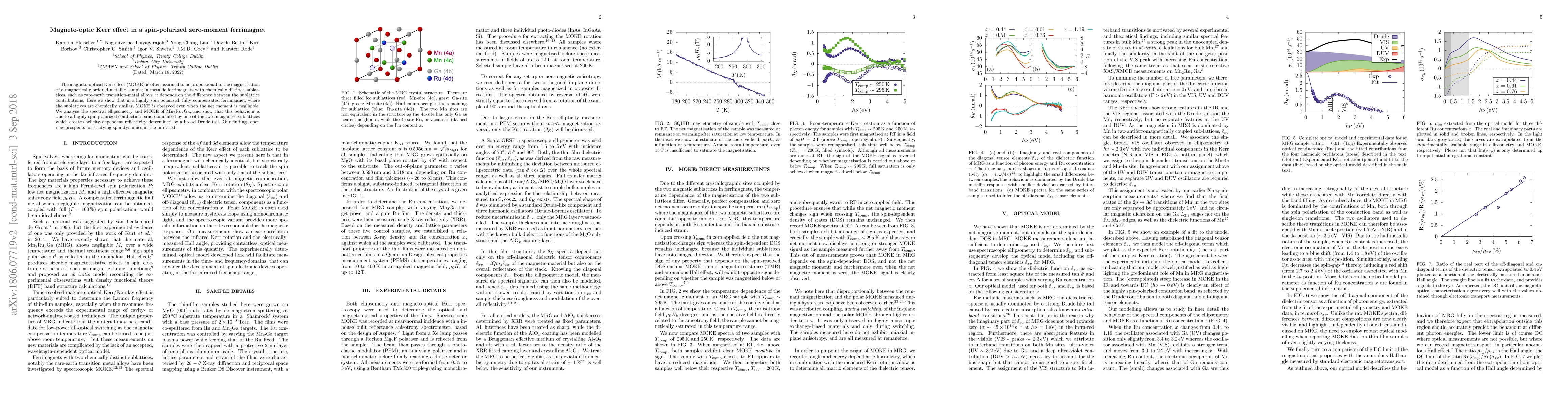 This paper investigates the magneto-optic Kerr effect (MOKE) in a spin-polarized zero-moment ferrimagnet, demonstrating MOKE in Mn₂RuₓGa despite its net zero magnetic moment. The observed effect is attributed to a highly spin-polarized conduction band dominated by one manganese sublattice, revealing new avenues for studying spin dynamics in the infra-red.