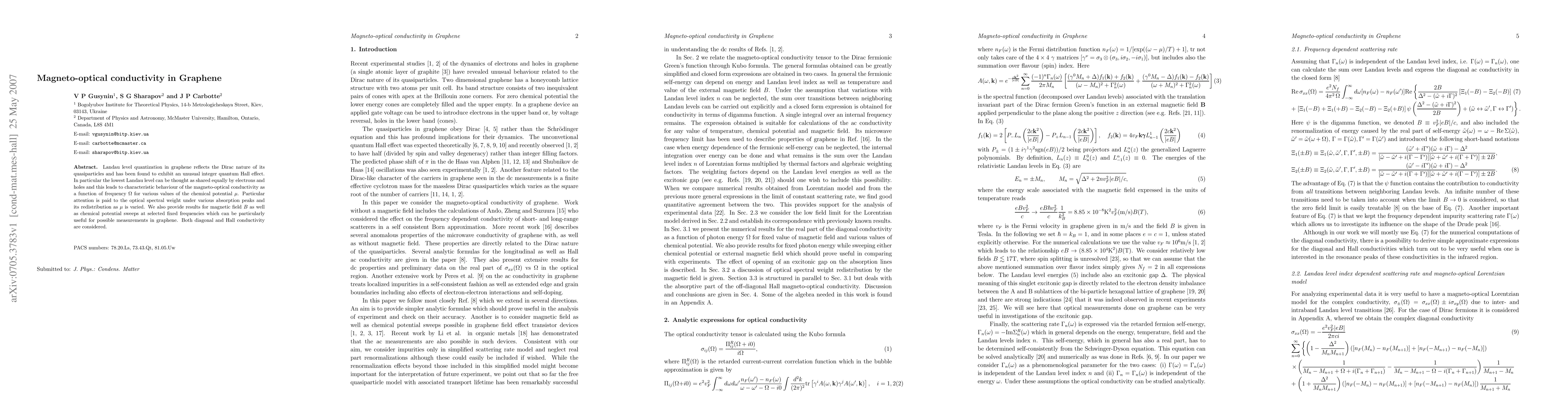 The paper presents detailed calculations and predictions for magneto-optical conductivity in graphene, introducing simplified versions of complex formulas for easier experimental interpretation and validation.