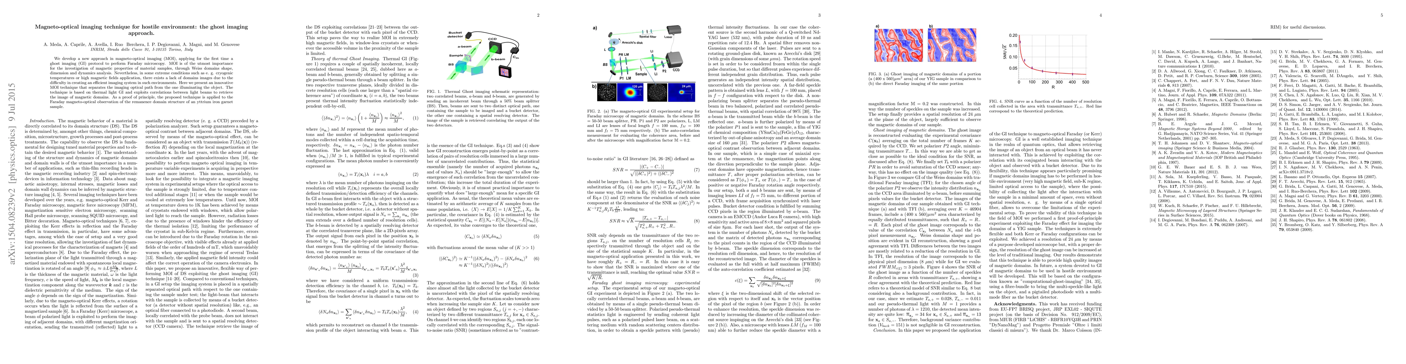This paper introduces a novel magneto-optical imaging technique using ghost imaging to analyze magnetic properties in extreme conditions. The method separates the imaging and illumination paths, enabling effective Faraday microscopy in environments like cryogenic temperatures or high magnetic fields.