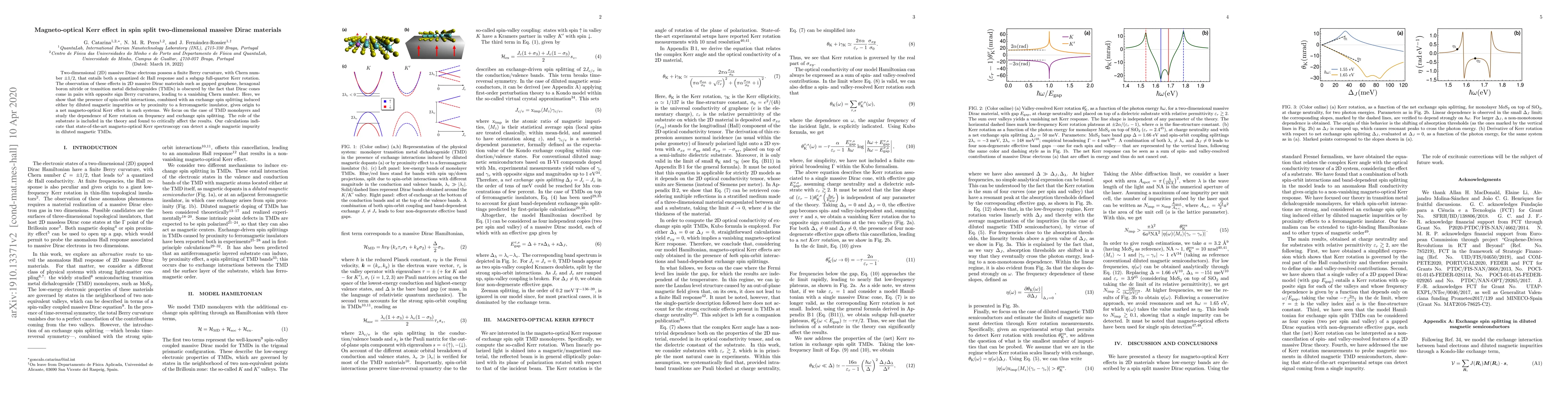 Two-dimensional (2D) massive Dirac electrons possess a finite Berry curvature, with Chern number $\pm 1/2$, that entails both a quantized dc Hall response and a subgap full-quarter Kerr rotation. The observation of these effects in 2D massive Dirac materials such as gapped graphene, hexagonal boron nitride or transition metal dichalcogenides (TMDs) is obscured by the fact that Dirac cones come in pairs with opposite sign Berry curvatures, leading to a vanishing Chern number. Here, we show that the presence of spin-orbit interactions, combined with an exchange spin splitting induced either by diluted magnetic impurities or by proximity to a ferromagnetic insulator, gives origin to a net magneto-optical Kerr effect in such systems. We focus on the case of TMD monolayers and study the dependence of Kerr rotation on frequency and exchange spin splitting. The role of the substrate is included in the theory and found to critically affect the results. Our calculations indicate that state-of-the-art magneto-optical Kerr spectroscopy can detect a single magnetic impurity in diluted magnetic TMDs.