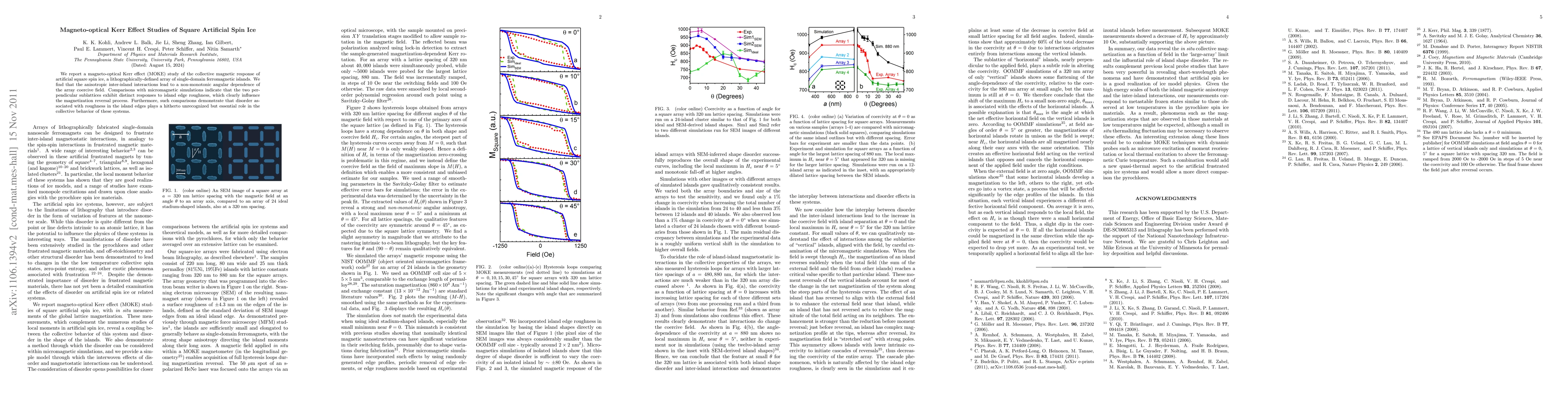 This study investigates the magneto-optical Kerr effect in square artificial spin ice, revealing that anisotropic inter-island interactions cause a non-monotonic angular dependence of the coercive field. Micromagnetic simulations show that island edge roughness distinctly affects the two perpendicular sublattices, highlighting the crucial role of edge disorder in the collective magnetic behavior.