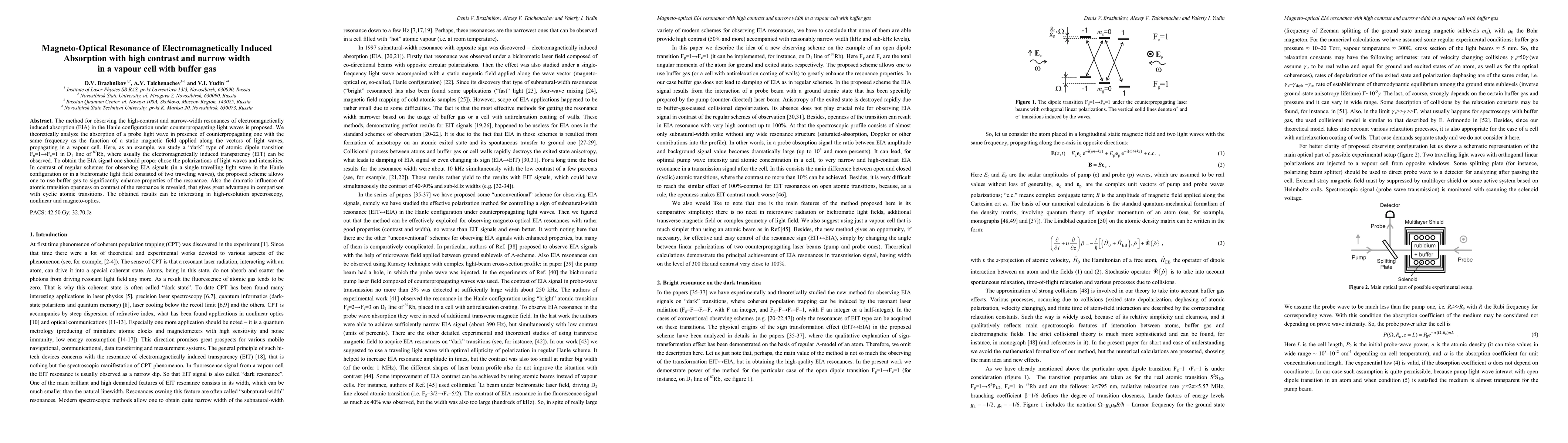 The paper proposes a method for observing high-contrast, narrow-width electromagnetically induced absorption (EIA) in a vapour cell with buffer gas, enhancing resonance properties compared to traditional schemes. The study highlights the significant influence of atomic transition openness on resonance contrast, offering advantages over cyclic atomic transitions, with potential applications in high-resolution spectroscopy and magneto-optics.
