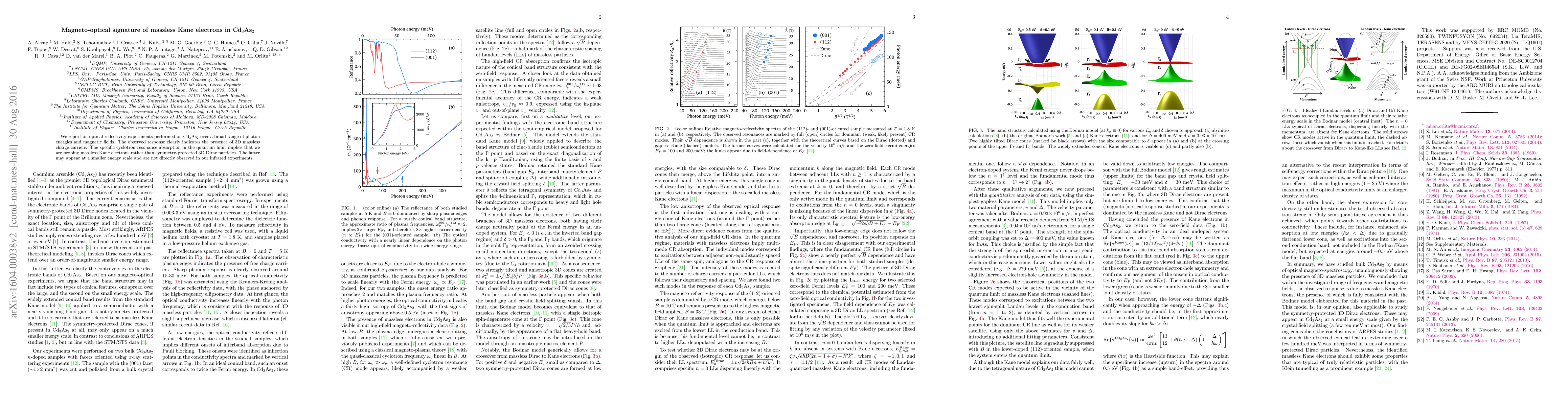 This study reveals the magneto-optical signature of 3D massless Kane electrons in Cd3As2 through optical reflectivity experiments, identifying specific cyclotron resonance absorption indicative of these carriers rather than 3D Dirac particles. The findings highlight the unique optical properties of massless Kane electrons.