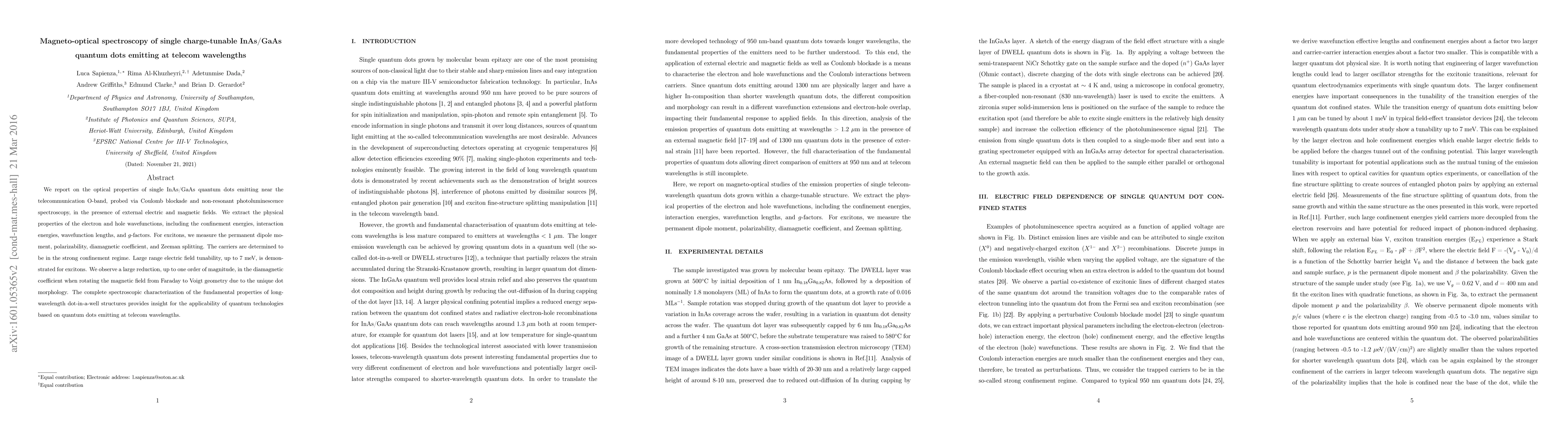 The research employed a combination of experimental and theoretical approaches to study the optical properties of telecom-wavelength quantum dots.