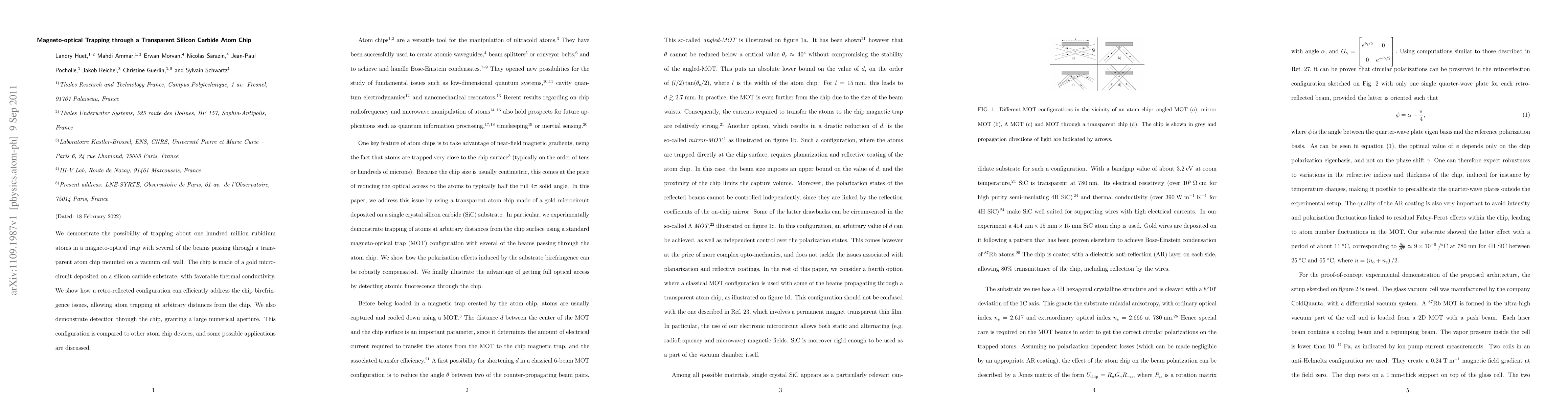 This paper details the successful trapping of one hundred million rubidium atoms in a magneto-optical trap using a transparent silicon carbide atom chip, addressing birefringence with a retro-reflected configuration, and demonstrating high-efficiency atom detection through the chip. The potential applications and advantages over other atom chip devices are also discussed.