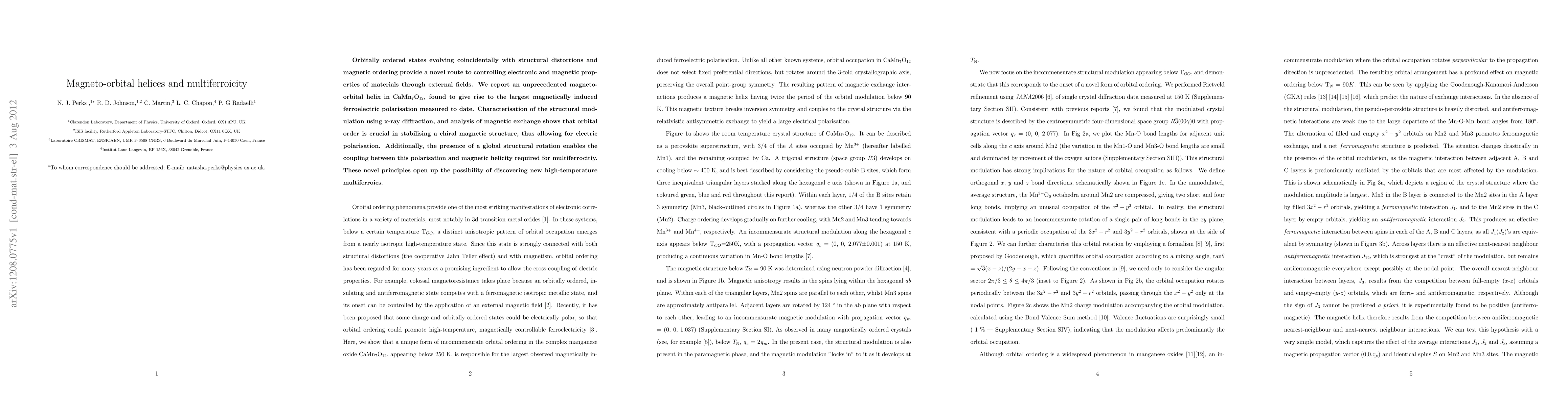 Researchers discovered a magneto-orbital helix in CaMn7O12 that induces the largest magnetically induced ferroelectric polarization measured to date, opening up new possibilities for high-temperature multiferroics.