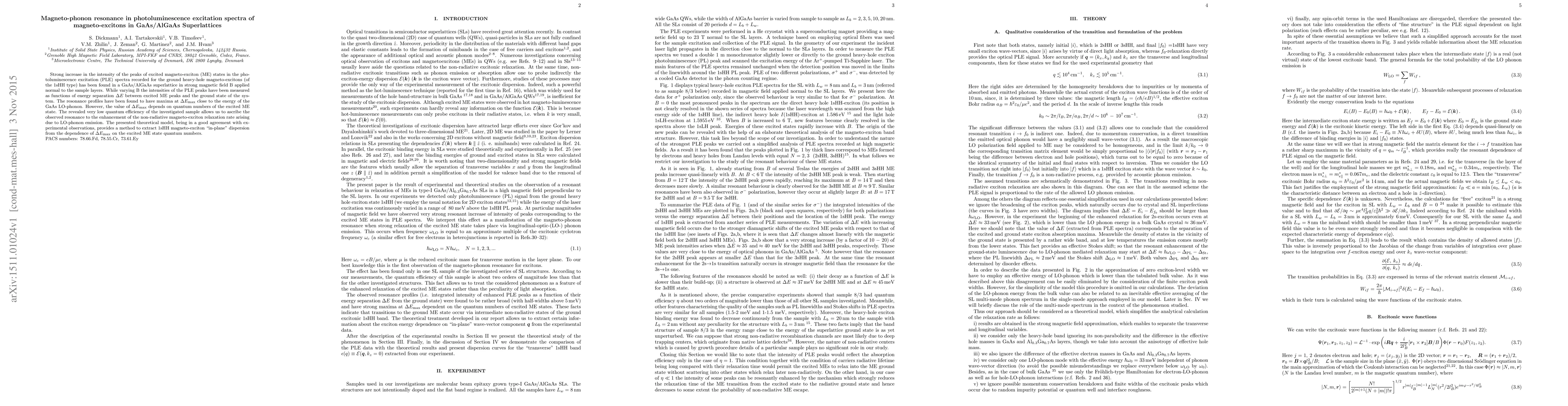 This paper investigates magneto-excitons in GaAs/AlGaAs superlattices, finding that the intensity of photoluminescence excitation peaks increases significantly under strong magnetic fields. The resonance peaks correlate with the energy of GaAs LO-phonons, suggesting enhanced non-radiative relaxation due to LO-phonon emission, and a theoretical model is proposed to determine magneto-exciton dispersion.