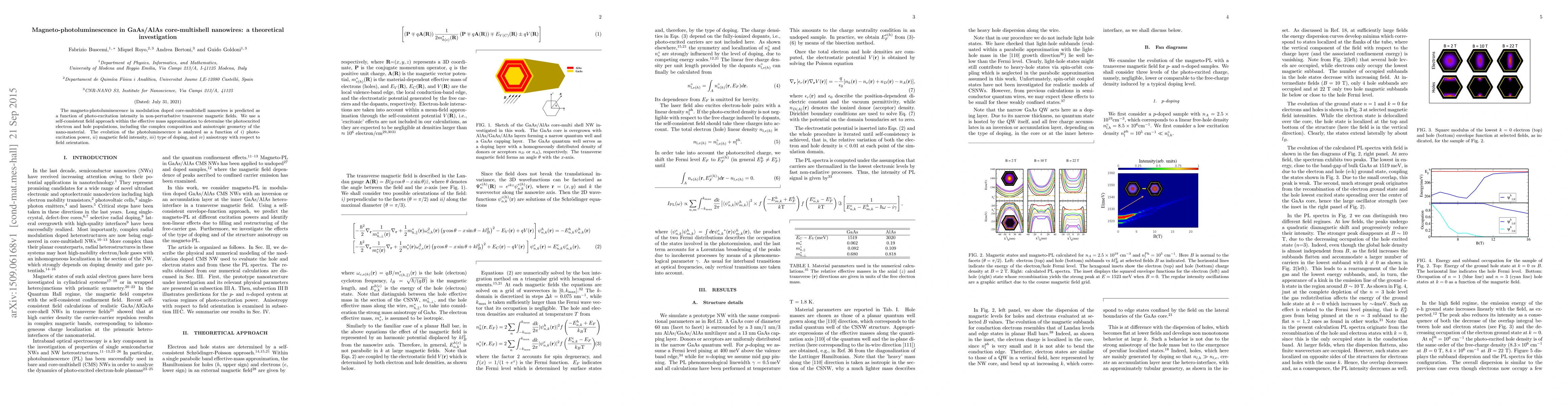 This paper theoretically investigates magneto-photoluminescence in GaAs/AlAs core-multishell nanowires under varying photo-excitation intensity and transverse magnetic fields. The study employs a self-consistent field approach to analyze the effects of excitation power, magnetic field strength, doping type, and anisotropy on photoluminescence.