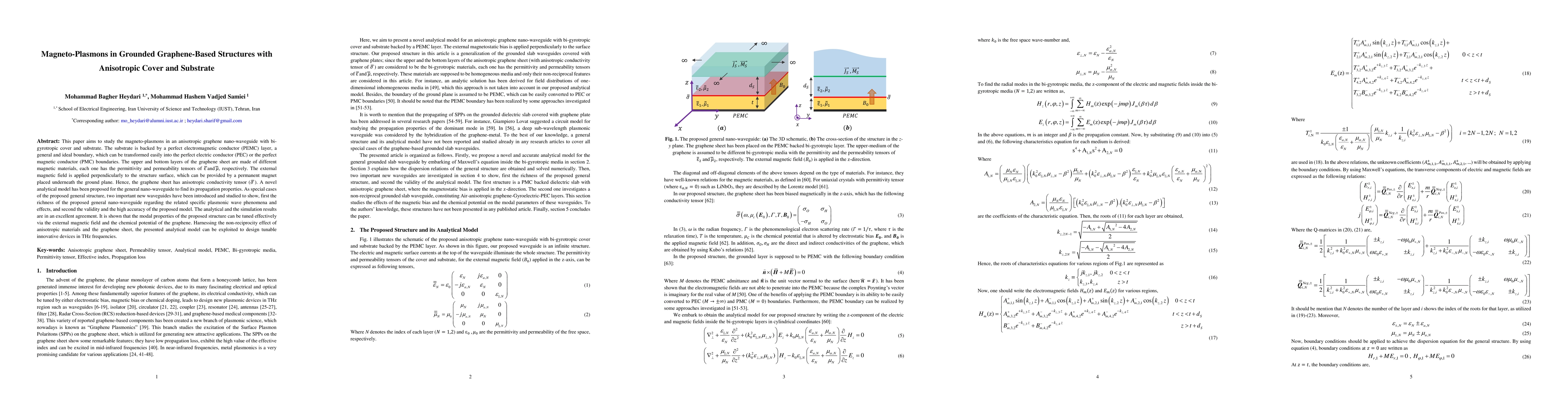 The paper presents an advanced analytical model for magneto-plasmons in anisotropic graphene-based structures, capable of predicting and tuning the modal properties via chemical doping and magnetic bias.