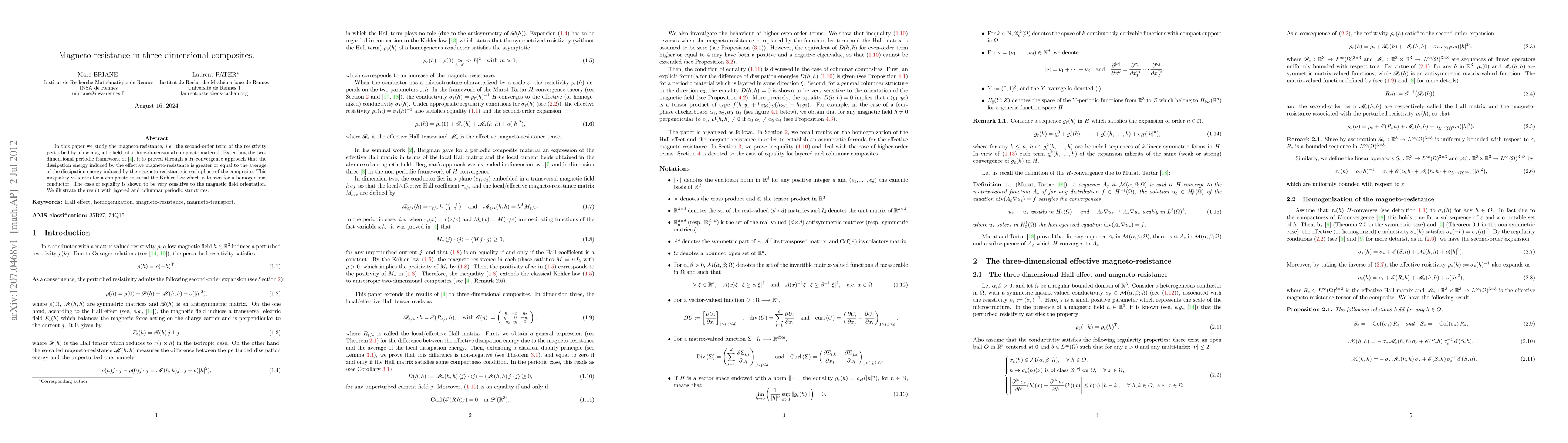 This paper investigates the magneto-resistance in three-dimensional composite materials, proving through H-convergence that the effective magneto-resistance dissipation energy is greater or equal to the average dissipation energy of each phase. The study validates the Kohler law for composites and highlights the sensitivity of equality cases to magnetic field orientation.