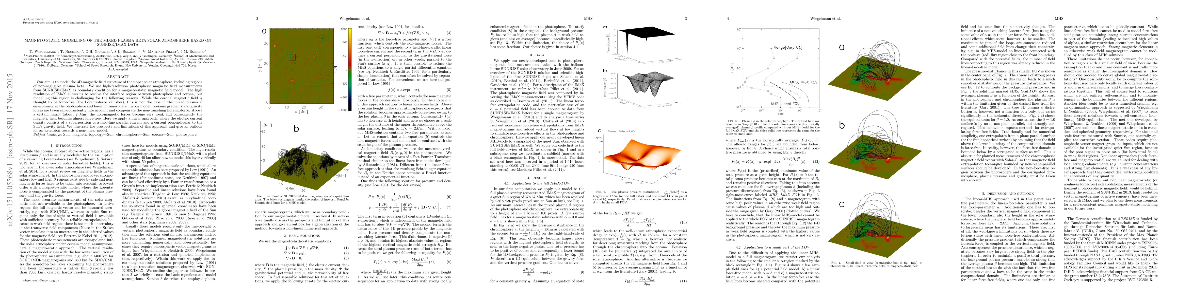 Our aim is to model the 3D magnetic field structure of the upper solar atmosphere, including regions of non-negligible plasma beta. We use high-resolution photospheric magnetic field measurements from SUNRISE/IMaX as boundary condition for a magneto-static magnetic field model. The high resolution of IMaX allows us to resolve the interface region between photosphere and corona, but modelling this region is challenging for the following reasons. While the coronal magnetic field is thought to be force-free (the Lorentz-force vanishes), this is not the case in the mixed plasma $\beta$ environment in the photosphere and lower chromosphere. In our model, pressure gradients and gravity forces are taken self-consistently into account and compensate the non-vanishing Lorentz-force. Above a certain height (about 2 Mm) the non-magnetic forces become very weak and consequently the magnetic field becomes almost force-free. Here we apply a linear approach, where the electric current density consists of a superposition of a field-line parallel current and a current perpendicular to the Sun's gravity field. We illustrate the prospects and limitations of this approach and give an outlook for an extension towards a non-linear model.