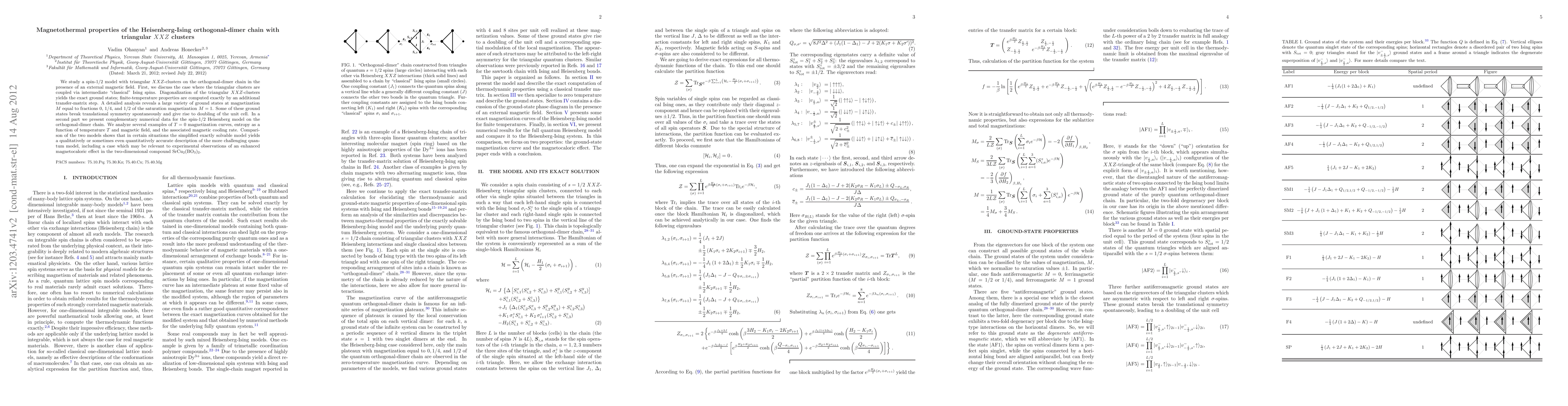 We study a spin-1/2 model with triangular XXZ-clusters on the orthogonal-dimer chain in the presence of an external magnetic field. First, we discuss the case where the triangular clusters are coupled via intermediate "classical" Ising spins. Diagonalization of the triangular XXZ-clusters yields the exact ground states; finite-temperature properties are computed exactly by an additional transfer-matrix step. A detailed analysis reveals a large variety of ground states at magnetization M equal to fractions 0, 1/4, and 1/2 of the saturation magnetization M=1. Some of these ground states break translational symmetry spontaneously and give rise to doubling of the unit cell. In a second part we present complementary numerical data for the spin-1/2 Heisenberg model on the orthogonal-dimer chain. We analyze several examples of T=0 magnetization curves, entropy as a function of temperature T and magnetic field, and the associated magnetic cooling rate. Comparison of the two models shows that in certain situations the simplified exactly solvable model yields a qualitatively or sometimes even quantitatively accurate description of the more challenging quantum model, including a case which may be relevant to experimental observations of an enhanced magnetocaloric effect in the two-dimensional compound SrCu2(BO3)2.