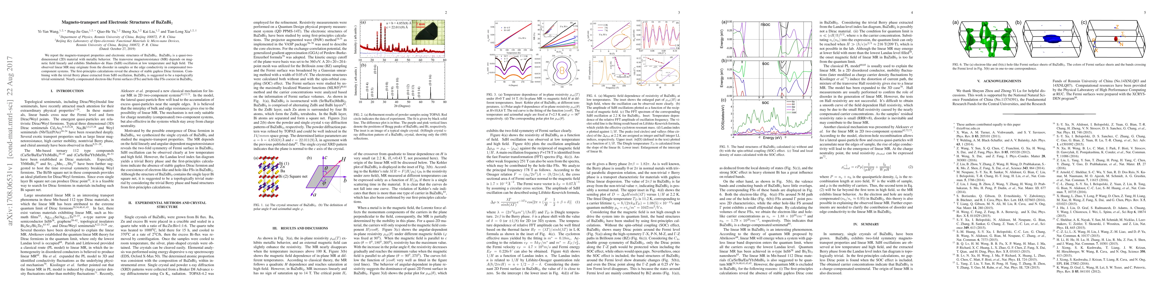 BaZnBi2 is a semi-metal with topologically trivial nature, exhibiting linear magneto-resistance due to disorder or edge conductivity, with nearly compensated electron-like and hole-like Fermi surfaces.