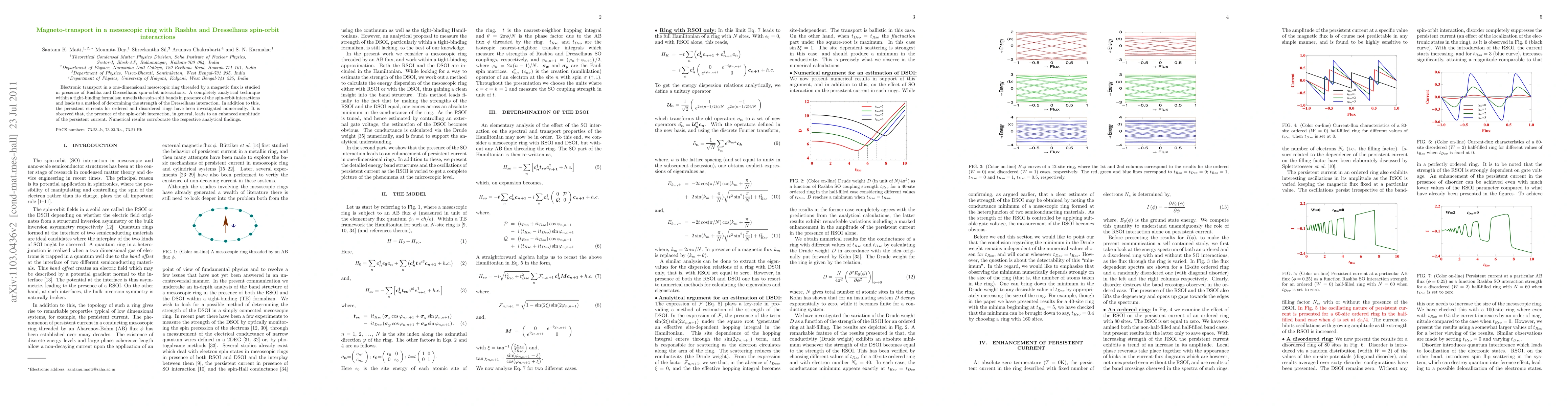 Electronic transport in a one-dimensional mesoscopic ring threaded by a magnetic flux is studied in presence of Rashba and Dresselhaus spin-orbit interactions. A completely analytical technique within a tight-binding formalism unveils the spin-split bands in presence of the spin-orbit interactions and leads to a method of determining the strength of the Dresselhaus interaction. In addition to this, the persistent currents for ordered and disordered rings have been investigated numerically. It is observed that, the presence of the spin-orbit interaction, in general, leads to an enhanced amplitude of the persistent current. Numerical results corroborate the respective analytical findings.