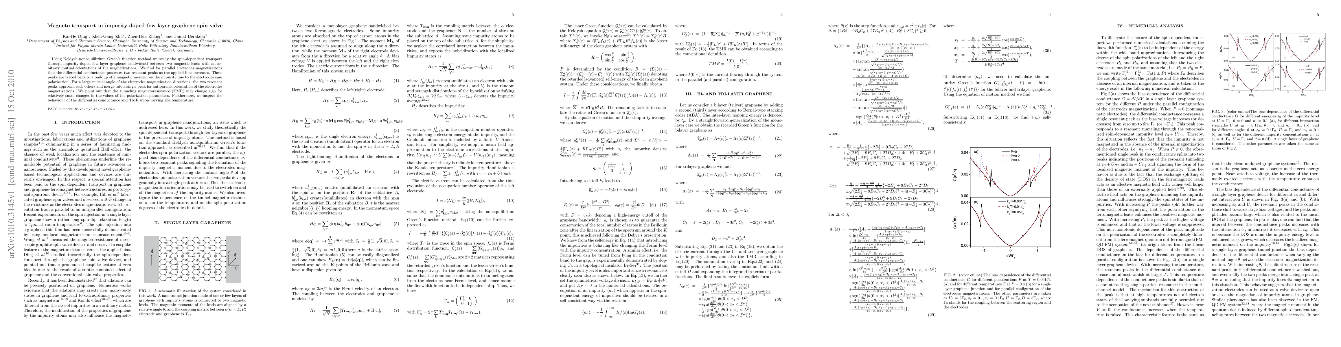 Researchers studied spin-dependent transport in impurity-doped few-layer graphene using Keldysh nonequilibrium Green's function method, finding resonant peaks in differential conductance that can change sign with small changes in polarization parameters.