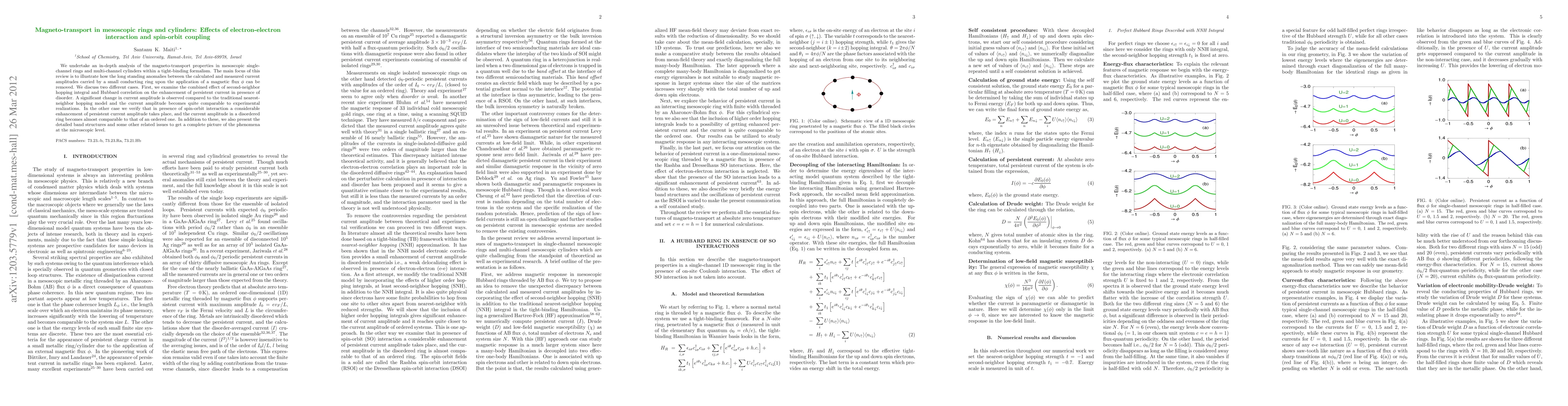 We undertake an in-depth analysis of the magneto-transport properties in mesoscopic single-channel rings and multi-channel cylinders within a tight-binding formalism. The main focus of this review is to illustrate how the long standing anomalies between the calculated and measured current amplitudes carried by a small conducting ring upon the application of a magnetic flux $\phi$ can be removed. We discuss two different cases. First, we examine the combined effect of second-neighbor hopping integral and Hubbard correlation on the enhancement of persistent current in presence of disorder. A significant change in current amplitude is observed compared to the traditional nearest-neighbor hopping model and the current amplitude becomes quite comparable to experimental realizations. In the other case we verify that in presence of spin-orbit interaction a considerable enhancement of persistent current amplitude takes place, and the current amplitude in a disordered ring becomes almost comparable to that of an ordered one. In addition to these, we also present the detailed band structures and some other related issues to get a complete picture of the phenomena at the microscopic level.