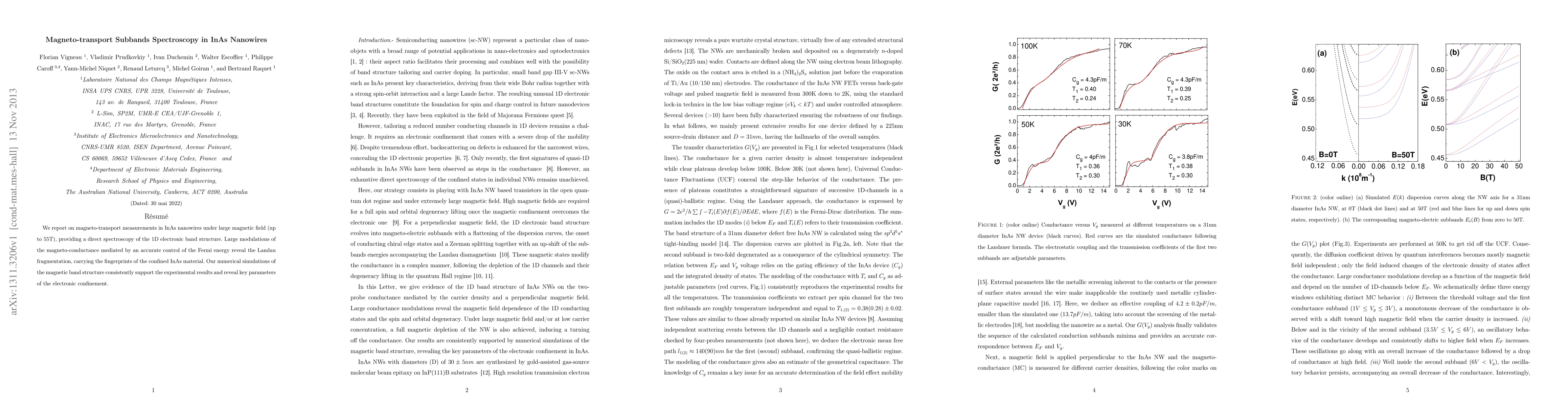 We report on magneto-transport measurements in InAs nanowires under large magnetic field (up to 55T), providing a direct spectroscopy of the 1D electronic band structure. Large modulations of the magneto-conductance mediated by an accurate control of the Fermi energy reveal the Landau fragmentation, carrying the fingerprints of the confined InAs material. Our numerical simulations of the magnetic band structure consistently support the experimental results and reveal key parameters of the electronic confinement.