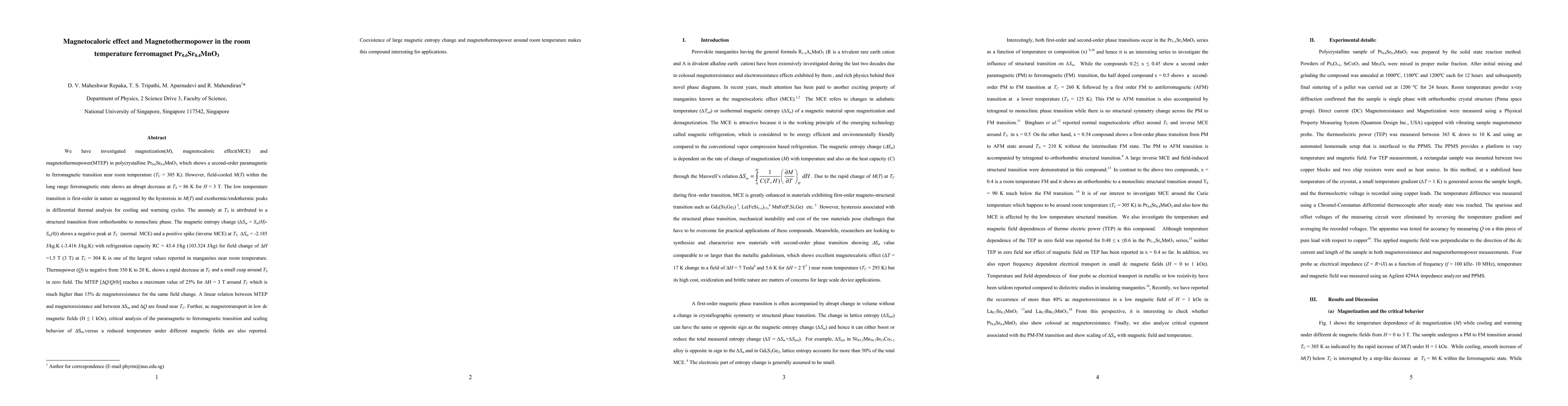 We have investigated magnetization(M), magnetocaloric effect(MCE) and magnetothermopower(MTEP) in polycrystalline Pr0.6Sr0.4MnO3, which shows a second-order paramagnetic to ferromagnetic transition near room temperature (TC = 305 K). However, field-cooled M(T) within the long range ferromagnetic state shows an abrupt decrease at TS = 86 K for H < 3 T. The low temperature transition is first-order in nature as suggested by the hysteresis in M(T) and exothermic/endothermic peaks in differential thermal analysis for cooling and warming cycles. The anomaly at TS is attributed to a structural transition from orthorhombic to monoclinic phase. The magnetic entropy change is negative at TC but changes to positive at TS. Thermopower (Q) is negative from 350 K to 20 K, shows a rapid decrease at TC and a small cusp around TS in zero field. The MTEP reaches a maximum value of 25% for deltaH = 3 T around TC which is much higher than 15% dc magnetoresistance for the same field change. A linear relation between MTEP and magnetoresistance, and between delta Sm and Delta Q are found near TC. Further, ac magnetotransport in low dc magnetic fields (H less than or equal to 1 kOe), critical analysis of the paramagnetic to ferromagnetic transition and scaling behavior of the magnetic entropy change versus a reduced temperature under different magnetic fields are also reported.