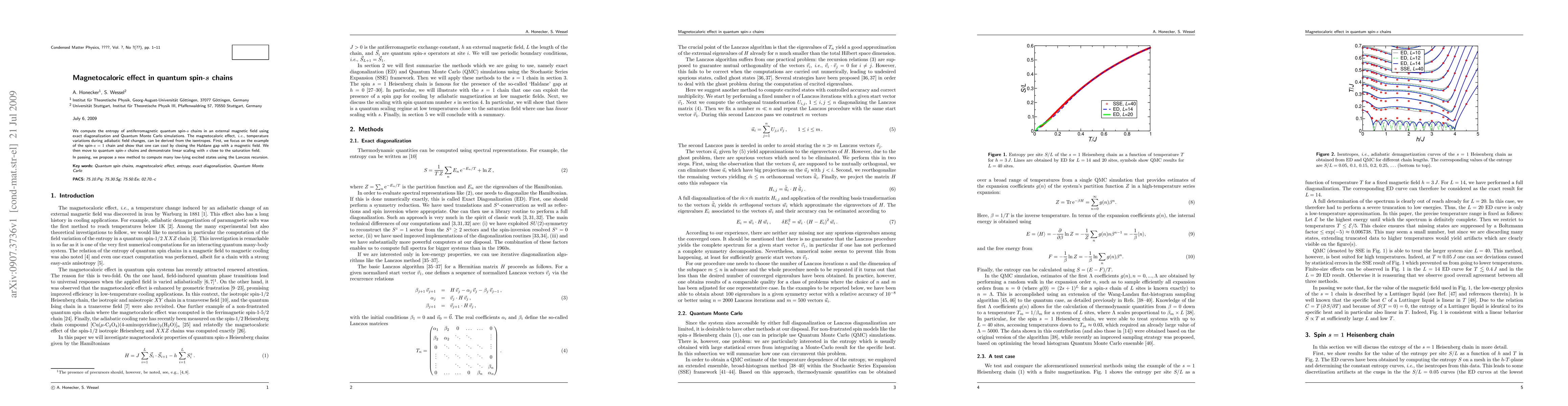 This paper investigates the magnetocaloric effect in antiferromagnetic quantum spin-s chains, demonstrating cooling via adiabatic magnetic field changes and proposing a new method for computing low-lying excited states using Lanczos recursion. The study focuses on spin-s=1 chains and shows linear scaling with spin-s near saturation field.