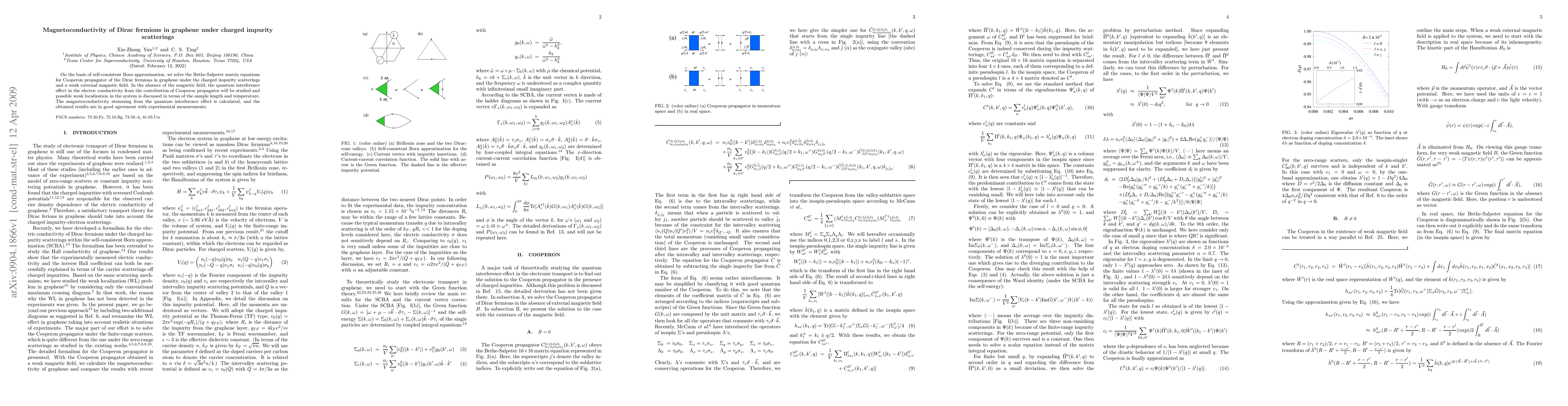 This paper investigates the magnetoconductivity of Dirac fermions in graphene under charged impurity scattering using the self-consistent Born approximation. It finds that quantum interference effects, including weak localization, influence the electric conductivity, and calculates magnetoconductivity that aligns with experimental data.