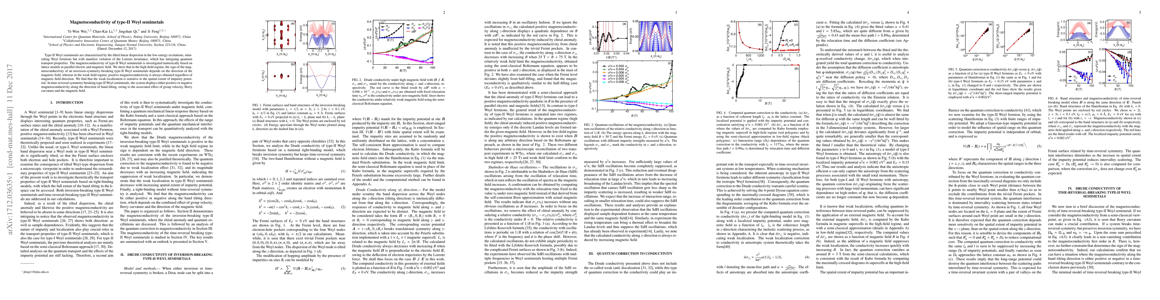 This paper investigates the magnetoconductivity of type-II Weyl semimetals, revealing that high magnetic fields can reverse conductivity signs depending on field direction, while weak fields consistently yield positive conductivity. The study also highlights the influence of impurity potential and the role of group velocity, Berry curvature, and magnetic field in determining conductivity in systems with time-reversal symmetry breaking.