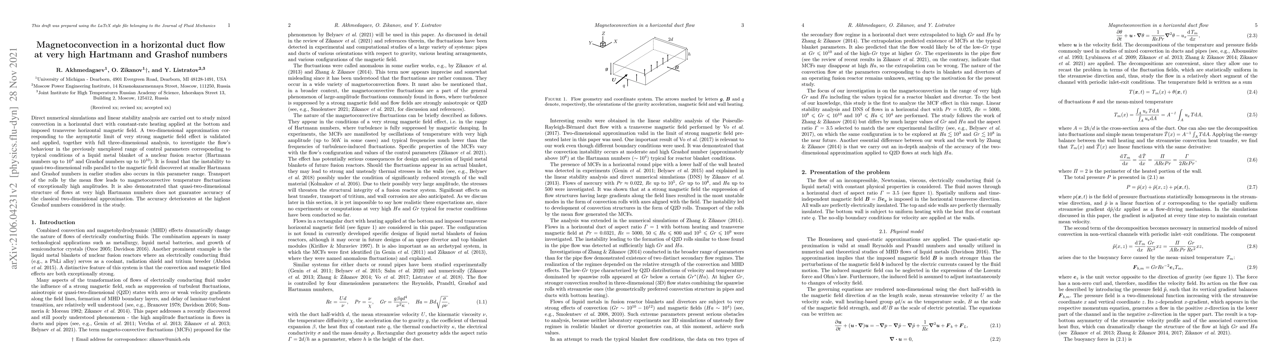 Direct numerical simulations and linear stability analysis are carried out to study mixed convection in a horizontal duct with constant-rate heating applied at the bottom and imposed transverse horizontal magnetic field. A two-dimensional approximation corresponding to the asymptotic limit of very strong magnetic field effect is validated and applied, together with full three-dimensional analysis, to investigate the flow's behaviour in the previously unexplored range of control parameters corresponding to typical conditions of a liquid metal blanket of a nuclear fusion reactor (Hartmann numbers up to $10^4$ and Grashof numbers up to $10^{10}$). It is found that the instability to quasi-two-dimensional rolls parallel to the magnetic field discovered at smaller Hartmann and Grashof numbers in earlier studies also occurs in this parameter range. Transport of the rolls by the mean flow leads to magnetoconvective temperature fluctuations of exceptionally high amplitudes. It is also demonstrated that quasi-two-dimensional structure of flows at very high Hartmann numbers does not guarantee accuracy of the classical two-dimensional approximation. The accuracy deteriorates at the highest Grashof numbers considered in the study.