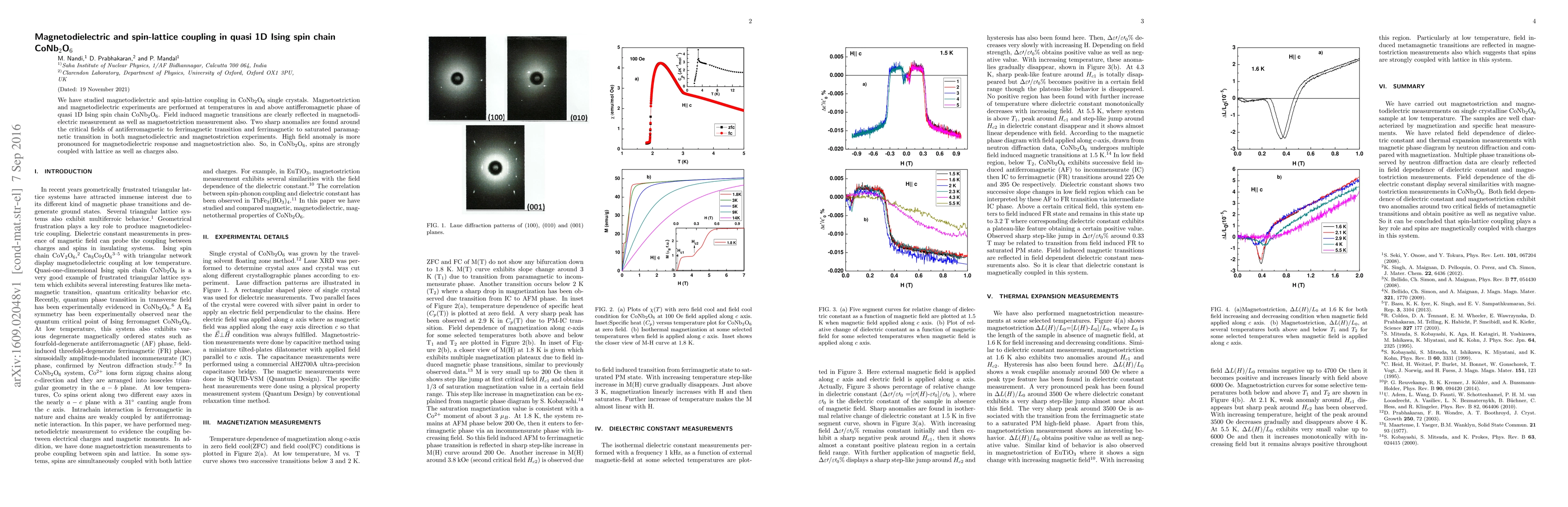 This study investigates magnetodielectric and spin-lattice coupling in quasi 1D Ising spin chain CoNb$_{2}$O$_{6}$. Experiments reveal sharp anomalies in magnetodielectric and magnetostriction responses during antiferromagnetic to ferrimagnetic and ferrimagnetic to paramagnetic transitions, indicating strong spin-lattice and spin-charge coupling.