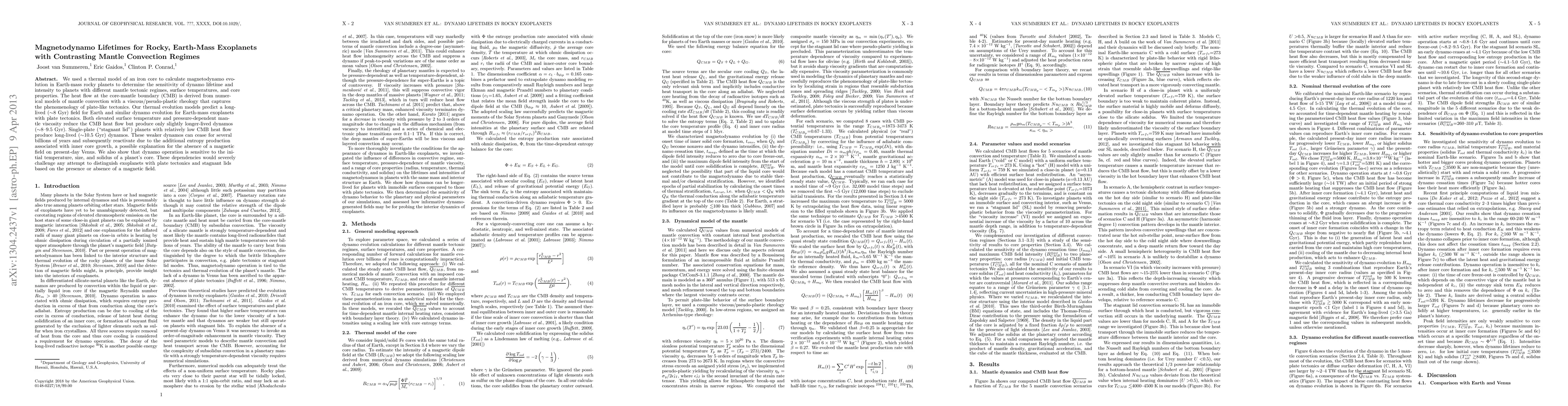 This study investigates the magnetodynamo lifetimes of Earth-mass rocky exoplanets with varying mantle convection regimes, finding that those with plate tectonics maintain dynamos for ~8 Gyr, while stagnant lid planets can sustain dynamos for up to ~10.5 Gyr. The research highlights the complexity in distinguishing exoplanets based on magnetic field presence due to dependencies on initial core conditions.