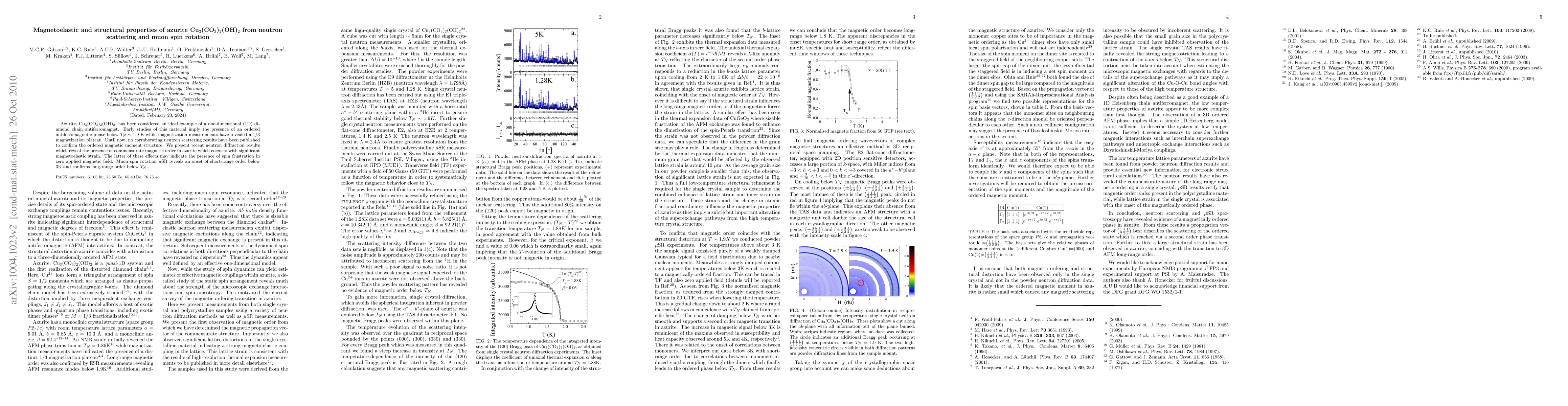 Azurite, Cu3(CO3)2(OH)2, has been considered an ideal example of a one-dimensional (1D) diamond chain antiferromagnet. Early studies of this material imply the presence of an ordered antiferromagnetic phase below $T_N \sim 1.9$ K while magnetization measurements have revealed a 1/3 magnetization plateau. Until now, no corroborating neutron scattering results have been published to confirm the ordered magnetic moment structure. We present recent neutron diffraction results which reveal the presence of commensurate magnetic order in azurite which coexists with significant magnetoelastic strain. The latter of these effects may indicate the presence of spin frustration in zero applied magnetic field. Muon spin rotation, $\mu$SR, reveals an onset of short-range order below 3K and confirms long-range order below $T_N$.