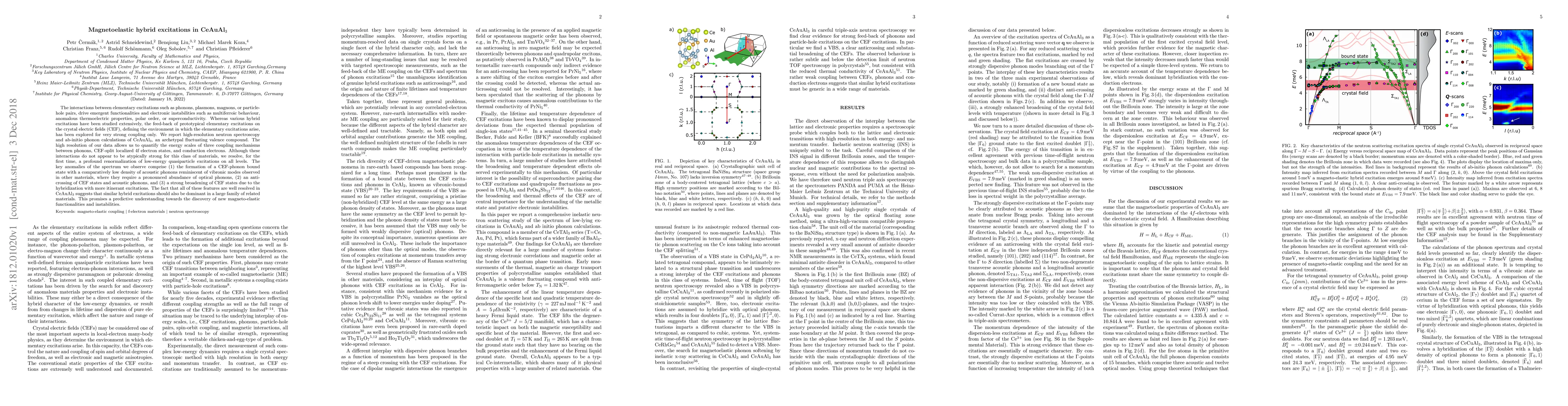 The interactions between elementary excitations such as phonons, plasmons, magnons, or particle-hole pairs, drive emergent functionalities and electronic instabilities such as multiferroic behaviour, anomalous thermoelectric properties, polar order, or superconductivity. Whereas various hybrid excitations have been studied extensively, the feed-back of prototypical elementary excitations on the crystal electric fields (CEF), defining the environment in which the elementary excitations arise, has been explored for very strong coupling only. We report high-resolution neutron spectroscopy and ab-initio phonon calculations of {\ceaual}, an archetypal fluctuating valence compound. The high resolution of our data allows us to quantify the energy scales of three coupling mechanisms between phonons, CEF-split localized 4f electron states, and conduction electrons. Although these interactions do not appear to be atypically strong for this class of materials, we resolve, for the first time, a profound renormalization of low-energy quasiparticle excitations on all levels. The key anomalies of the spectrum we observe comprise (1) the formation of a CEF-phonon bound state with a comparatively low density of acoustic phonons reminiscent of vibronic modes observed in other materials, where they require a pronounced abundance of optical phonons, (2) an anti-crossing of CEF states and acoustic phonons, and (3) a strong broadening of CEF states due to the hybridization with more itinerant excitations. The fact that all of these features are well resolved in CeAuAl$_3$ suggests that similar hybrid excitations should also be dominant in a large family of related materials. This promises a predictive understanding towards the discovery of new magneto-elastic functionalities and instabilities.