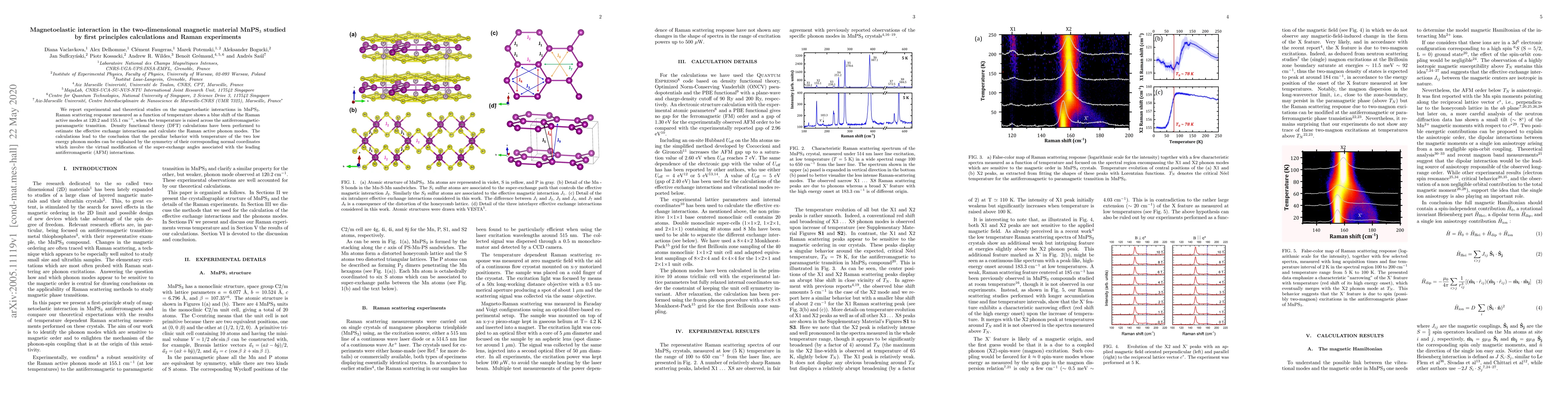 We report experimental and theoretical studies on the magnetoelastic interactions in MnPS$_3$. Raman scattering response measured as a function of temperature shows a blue shift of the Raman active modes at 120.2 and 155.1 cm$^{-1}$, when the temperature is raised across the antiferromagnetic-paramagnetic transition. Density functional theory (DFT) calculations have been performed to estimate the effective exchange interactions and calculate the Raman active phonon modes. The calculations lead to the conclusion that the peculiar behavior with temperature of the two low energy phonon modes can be explained by the symmetry of their corresponding normal coordinates which involve the virtual modification of the super-exchange angles associated with the leading antiferromagnetic (AFM) interactions.