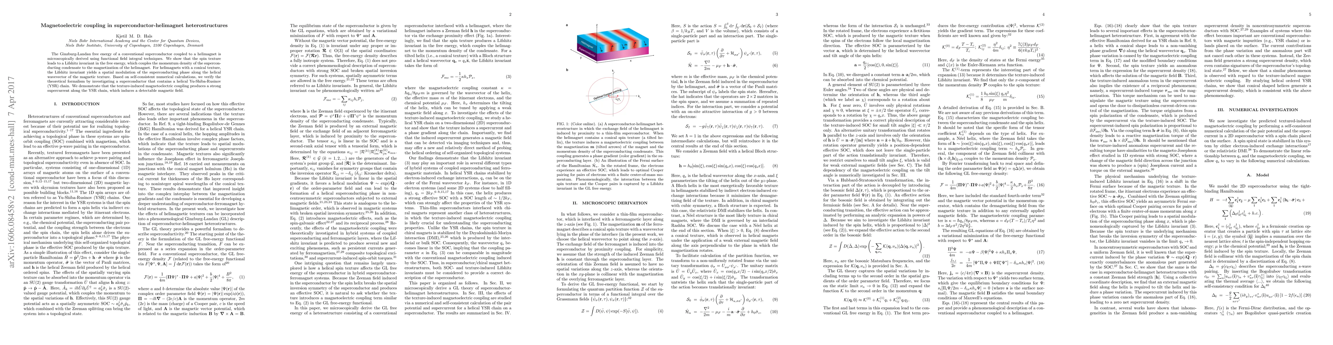 This research derives the Ginzburg-Landau free energy for a superconductor coupled to a helimagnet, revealing a Lifshitz invariant that links the superconducting condensate's momentum to the helimagnet's magnetization. Numerical simulations confirm the theoretical model, showing that the helical magnetic texture induces a strong supercurrent along a Yu-Shiba-Rusinov chain, generating a detectable magnetic field.