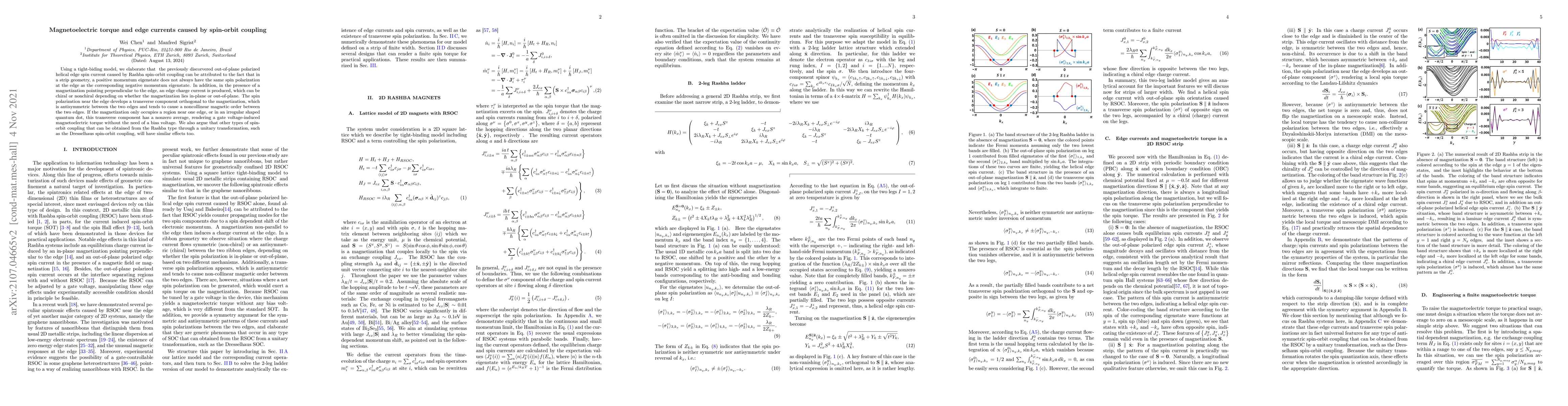 This research reveals how spin-orbit coupling generates helical edge spin currents and edge charge currents in strip geometries. A unique magnetoelectric torque arises from the transverse spin polarization near edges, especially when magnetization is out-of-plane, leading to noncollinear magnetic order and potential torque effects via gate voltages without a bias.