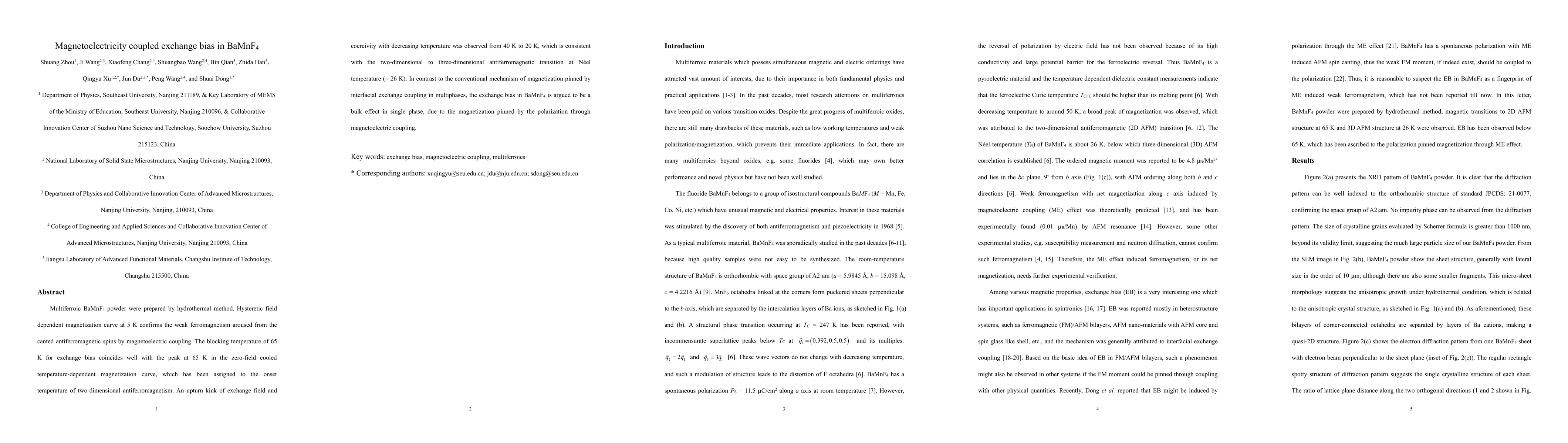 Researchers discovered magnetoelectricity coupled exchange bias in BaMnF$_4$, a multiferroic material, where weak ferromagnetism is triggered by magnetoelectric coupling. The exchange bias occurs due to polarization through magnetoelectric coupling, not interfacial exchange coupling, and varies with temperature.