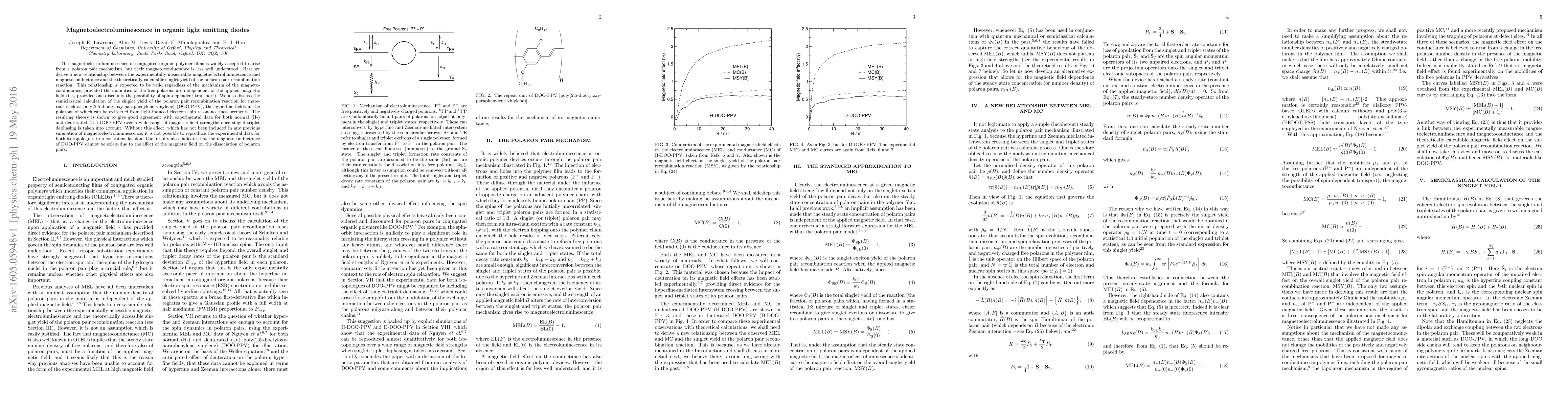 This paper establishes a new relationship between magnetoelectroluminescence and magnetoconductance in organic light-emitting diodes, showing that it correlates with the singlet yield of polaron pair recombination, regardless of the magnetoconductance mechanism. The theory, validated through experimental data for DOO-PPV, highlights the importance of singlet-triplet dephasing in accurately modeling the observed phenomena.