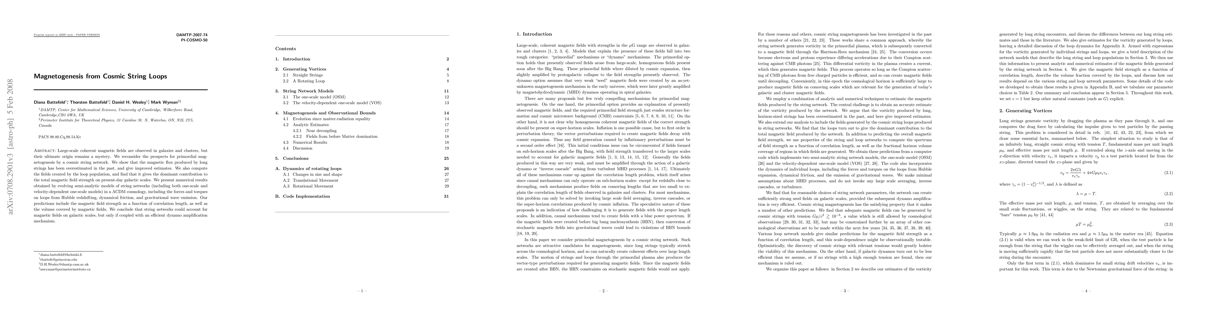 Cosmic string networks may have created large-scale magnetic fields in galaxies, but only if coupled with an efficient dynamo mechanism. They could account for magnetic fields on galactic scales through the loop population's dominant contribution to the total magnetic field strength.