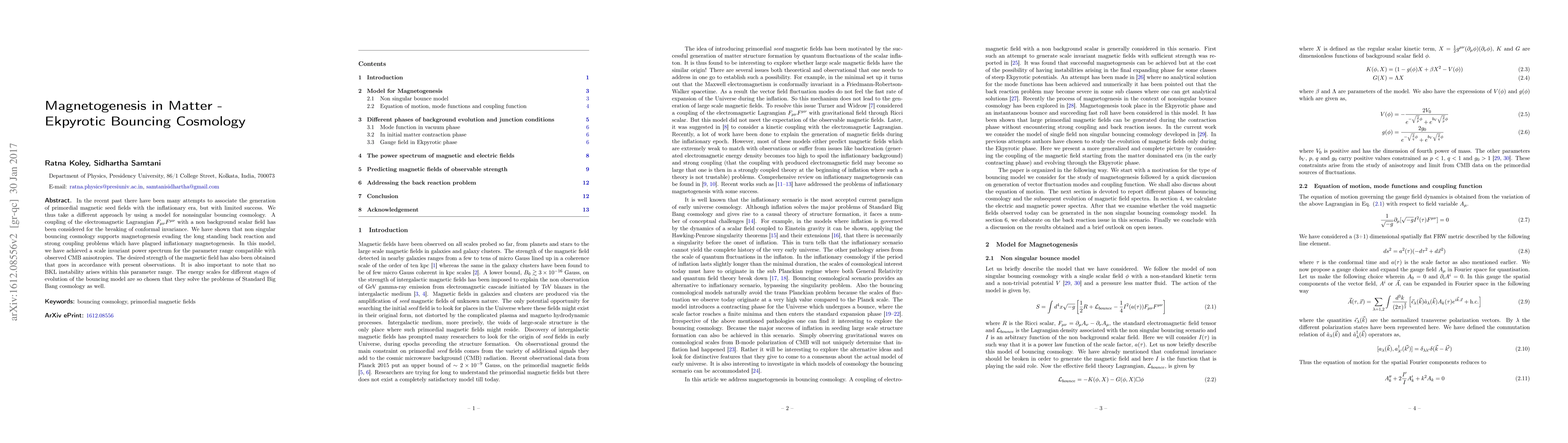 The paper presents a detailed analysis of magnetogenesis in a nonsingular bouncing cosmology model, demonstrating the feasibility of generating primordial magnetic fields without encountering strong coupling and BKL instability issues.