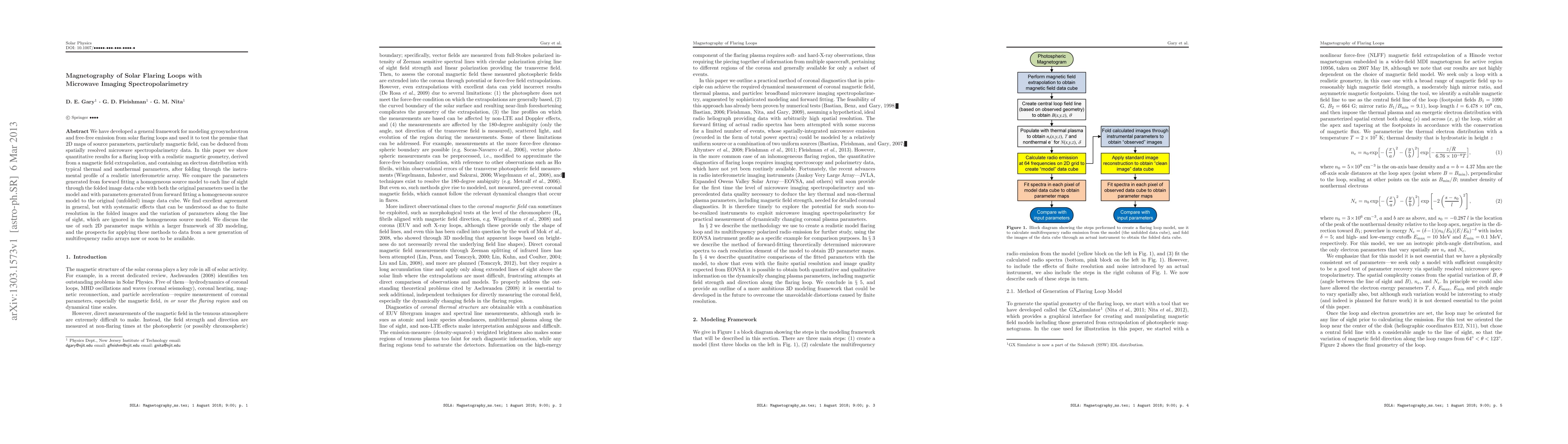 This paper develops a framework for modeling solar flaring loops' microwave emissions and uses it to deduce magnetic field parameters from spectropolarimetry data. It finds good agreement between modeled and observed parameters but notes systematic effects due to resolution and parameter variations along the line of sight.