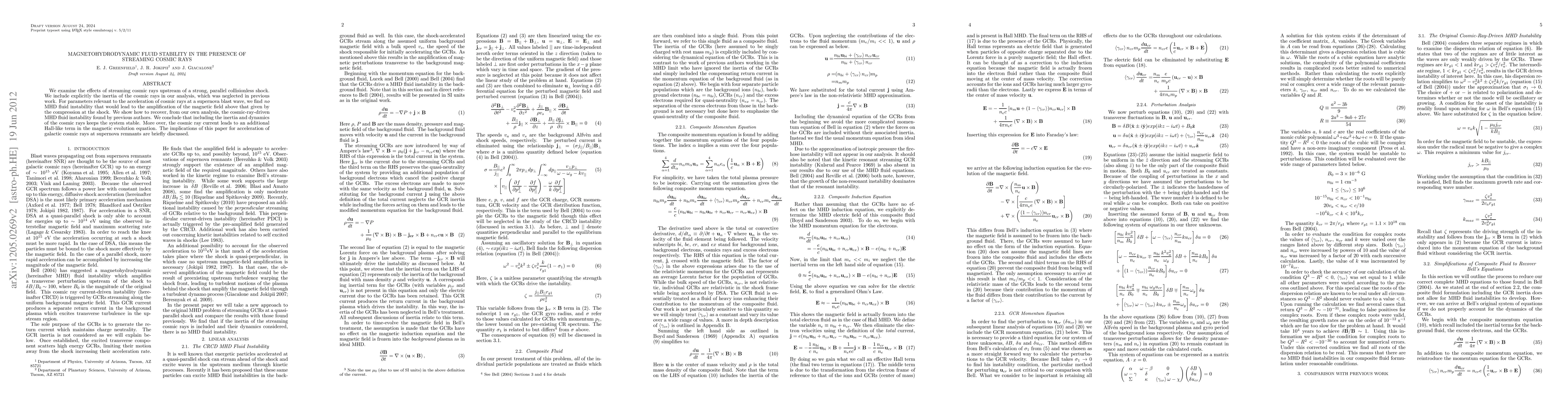 We examine the effects of streaming cosmic rays upstream of a strong, parallel collisionless shock. We include explicitly the inertia of the cosmic rays in our analysis, which was neglected in previous work. For parameters relevant to the acceleration of cosmic rays at a supernova blast wave, we find no MHD fluid instability that would lead to the amplification of the magnetic field above that given by the compression at the shock. We show how to recover, from our own analysis, the cosmic-ray-driven MHD fluid instability found by previous authors. We conclude that including the inertia and dynamics of the cosmic rays keeps the system stable. More over, the cosmic ray current leads to an additional Hall-like term in the magnetic evolution equation. The implications of this paper for acceleration of galactic cosmic rays at supernova remnants are briefly discussed.