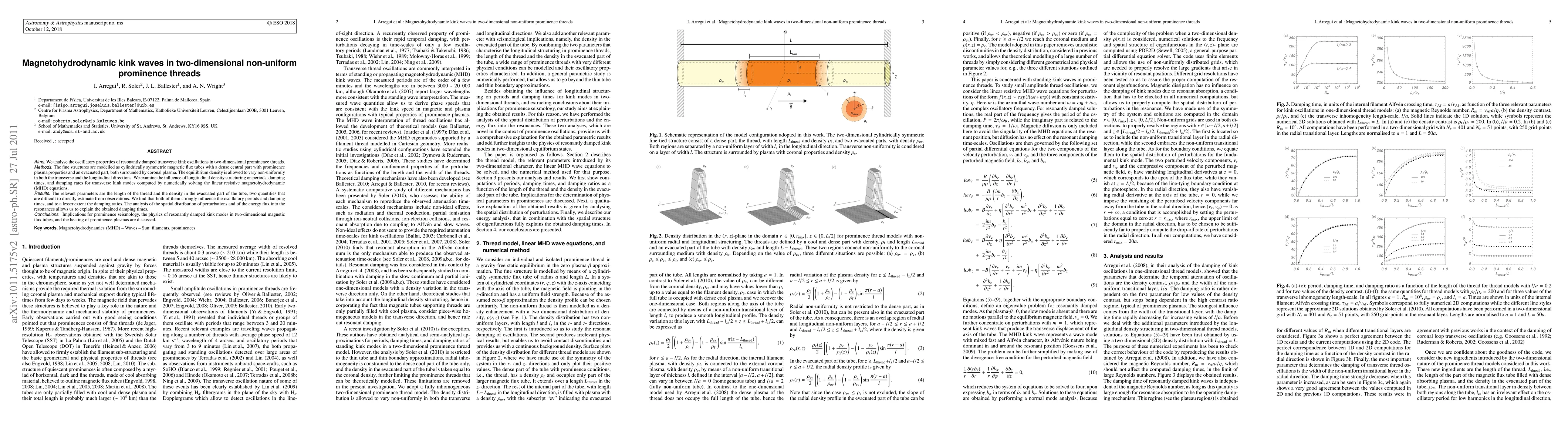 This paper investigates the oscillatory properties of transverse kink waves in two-dimensional prominence threads, finding that longitudinal density variations significantly affect the periods, damping times, and damping rates. The study uses numerical solutions of linear resistive magnetohydrodynamic equations to model the influence of thread length and density in the evacuated tube on these properties, with implications for prominence seismology and plasma heating.