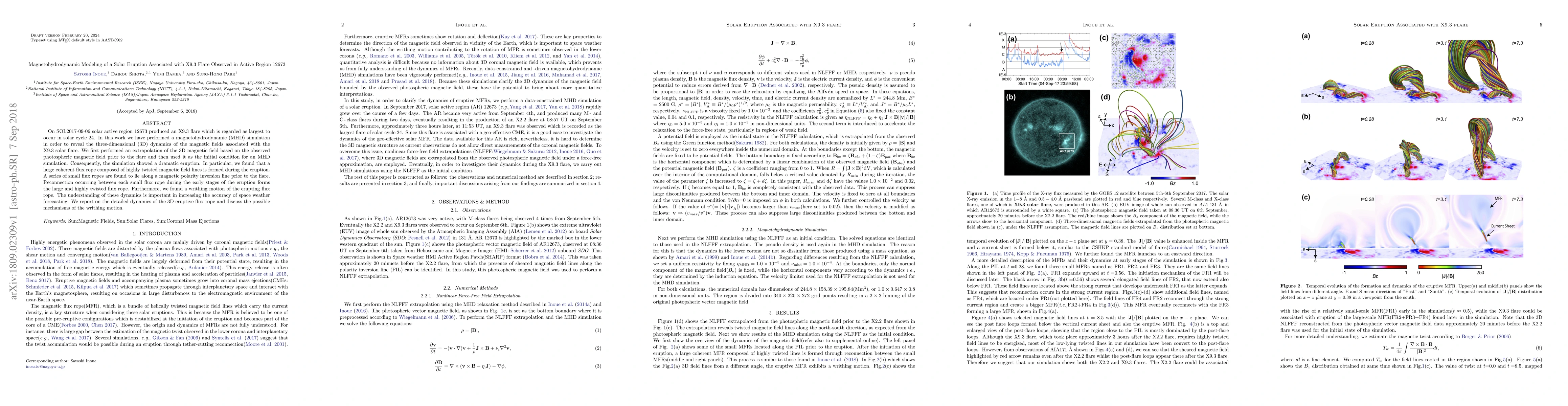 This study uses magnetohydrodynamic (MHD) modeling to analyze the 3D dynamics of the X9.3 solar flare in active region 12673, revealing the formation of a large, twisted flux rope and a series of smaller flux ropes along a polarity inversion line. The writhing motion of the erupting flux rope is also discussed, enhancing our understanding of space weather forecasting.