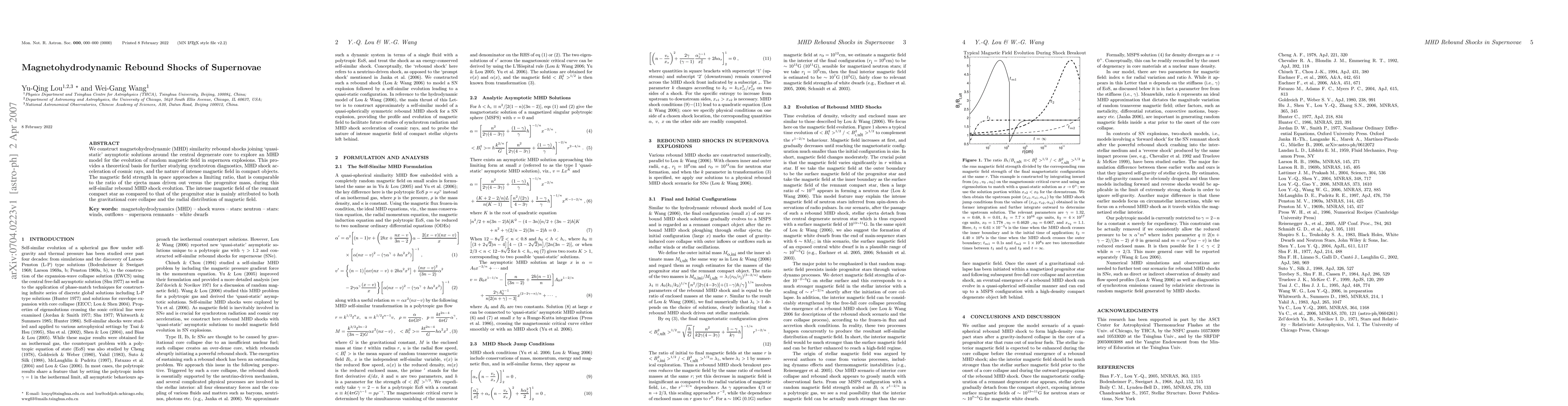 This paper develops a magnetohydrodynamic (MHD) model for the evolution of rebound shocks in supernovae, linking magnetic field strength to the mass ratio of ejected material versus progenitor mass. It provides insights into synchrotron diagnostics, cosmic ray acceleration, and the magnetic fields in compact stellar remnants.