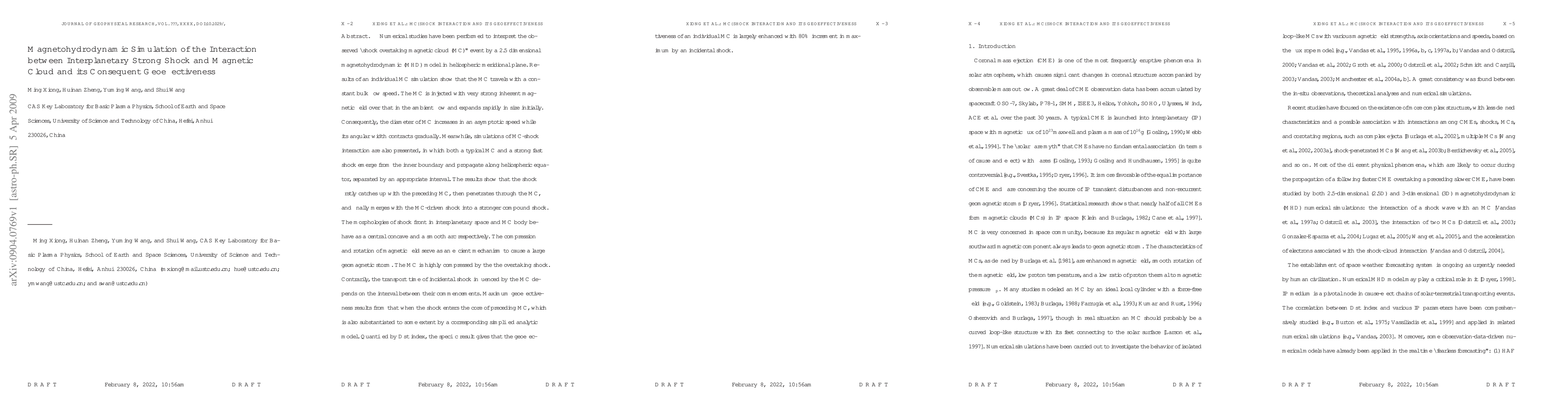 A simulation study found that a magnetic cloud interacts with a strong shock in space, causing significant geomagnetic storms. The interaction enhances the geoeffectiveness of the magnetic cloud by 80% when the shock enters its core.